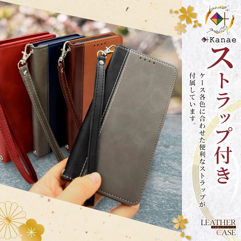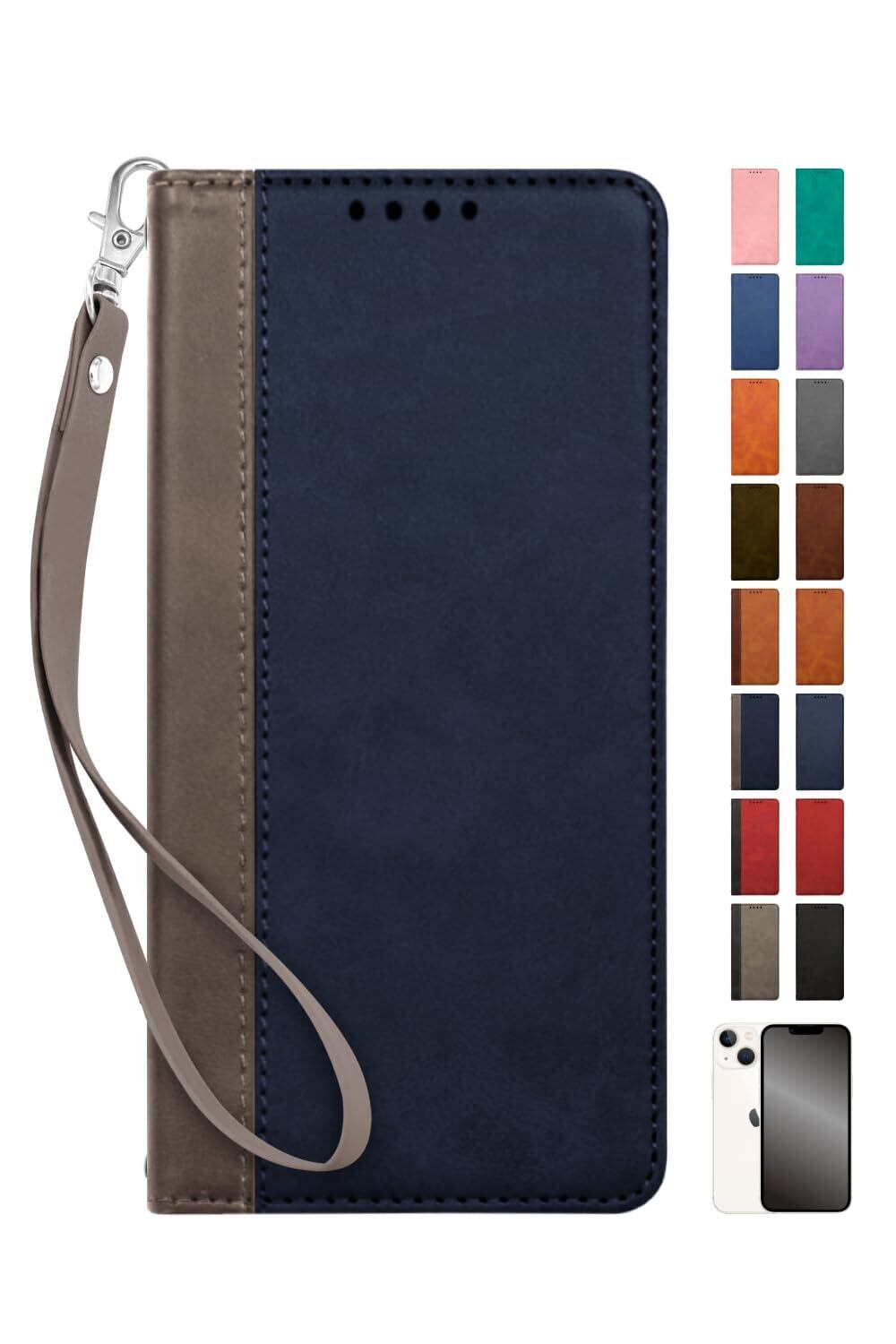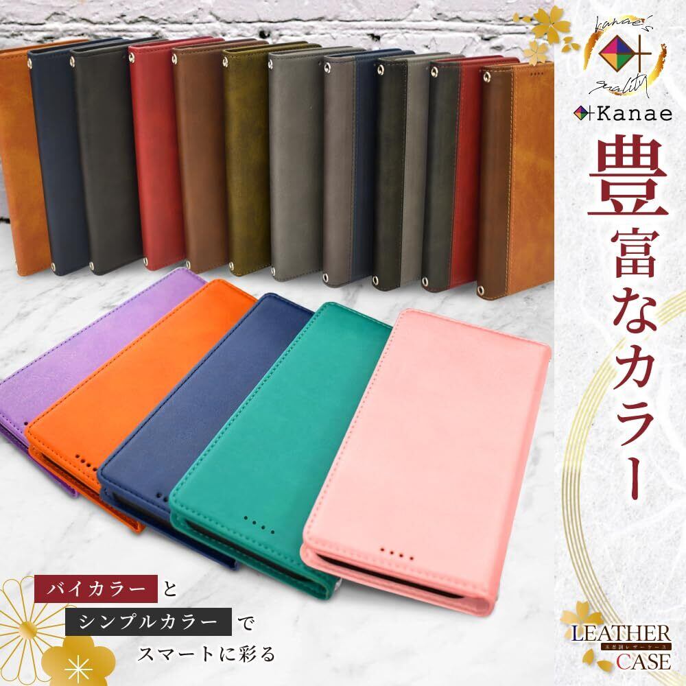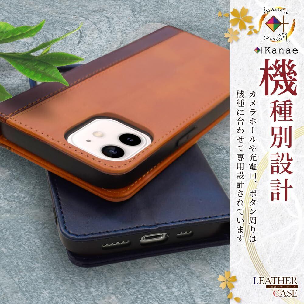 叶kanae カナエ iPhone13 ケース カバー 手帳型 本革調 レザーケース ネイビー×グレー 1個入り