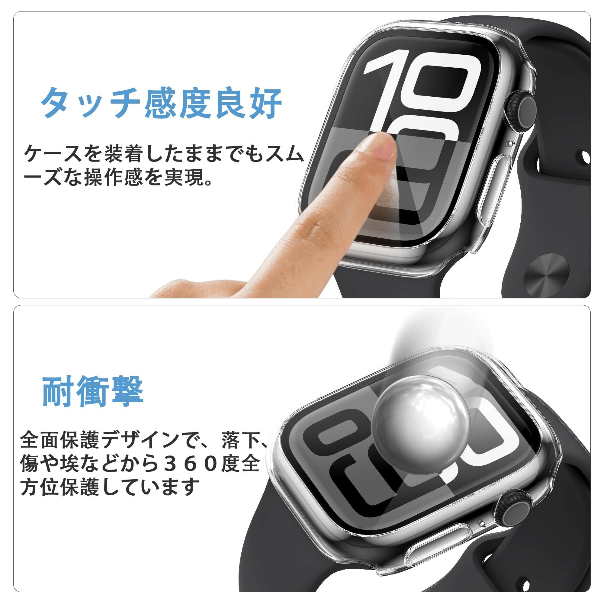 「Apple Watch 10 保護カバー+ガラスフィルム一体型」機能性とデザインを兼ね備えて、優れたApple Watch 10 ケースです。Apple Watch 10 に合わせて丁寧に作られたフレームなので、違和感なくApple Watch 10 本体にジャストフィット!日常で起きる損傷リスクを高強度なフィルム層が防ぎ、液晶をキズから保護します。