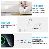 【USB Type-Cケーブル・高耐久・急速充電・クイック転送】:[ケーブル長さ:1.83m 重さ:43g]、本25WタイプCケーブルは一般的のより5倍以上の持続力を持ち、折り曲げに対して圧倒的な耐久性を実現しました。最大480mbpsのデータ転送速度も実現。