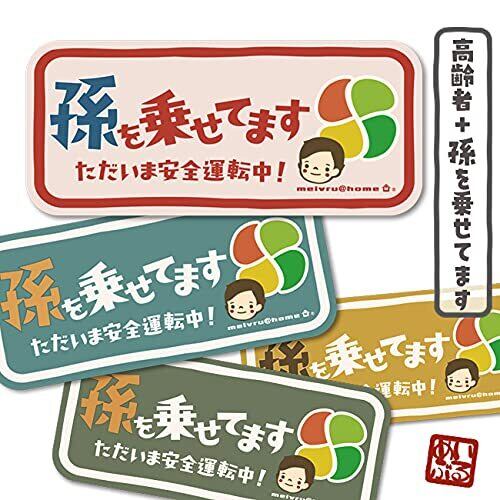 NEW 孫を乗せてます 高齢者マーク ステッカー もみじマーク シルバーマーク もみじまーく しるばーまーく BABY IN CAR ベビーインカー 子ども 赤ちゃんが乗ってます(ys/孫+高齢者ベージュ)