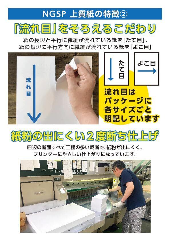 【特 徴】(非塗工紙)白色度(88%)不透明度(93%)をバランスよく高め、優れた印刷適性を備え,保存性に優れた中性紙です。【厚 み】上質紙180㎏・紙厚0.24mm 【用 途】通常ハガキ(プリント・手書き共に良好) デッサン用紙、ミニ画用紙(鉛筆書き)各種カード作成 【対応機種】 複合機(コピー機)◎ レーザープリンター◎インクジェットプリンタ〇【上質180㎏の厚さについて】 上質180㎏の厚さは、一般的に(超厚口)と呼称されており 厚さの順序としては、 (55㎏ 薄口)<(70㎏ 中厚口)< (90㎏ 厚口)<(110㎏ 特厚口)<(135㎏ 最厚口)< (180㎏ 超厚口)と上質紙の中では最も厚いタイプとなっています。