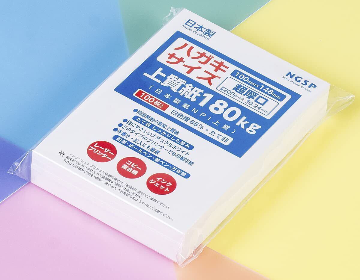 【超厚口】ハガキサイズ用紙 無地 上質紙 180kg 国産 日本製紙 NPI上質 100枚