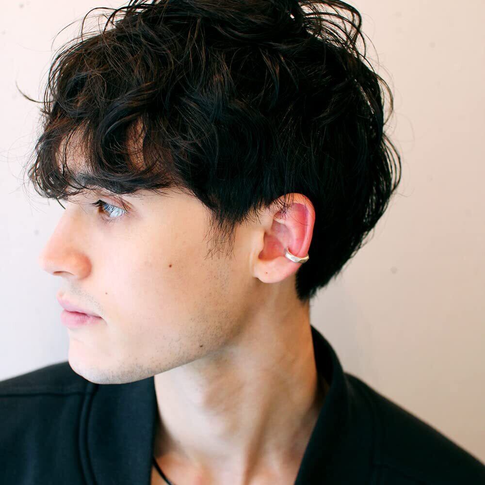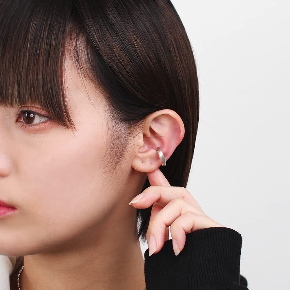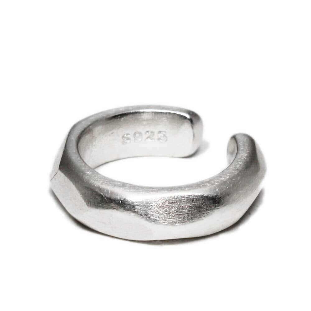 ランダムに面を削り出したイヤーカフ。形状はメカパーツのような武骨さがありますが、角のエッジを穏やかにし、軽い研磨による控えめなマット処理で柔らかい印象に仕上げているので、メンズ、レディースどちらでもお使いいただけます。片耳用の1個販売です。