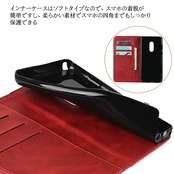 【機能性②】:内蔵マグネット機能搭載の手帳型ケースなので、留め具の邪魔無し、滑り防止の素材を採用され、とてもシンプルな感じで、しかも持ち易く、使い勝手がよいのです。