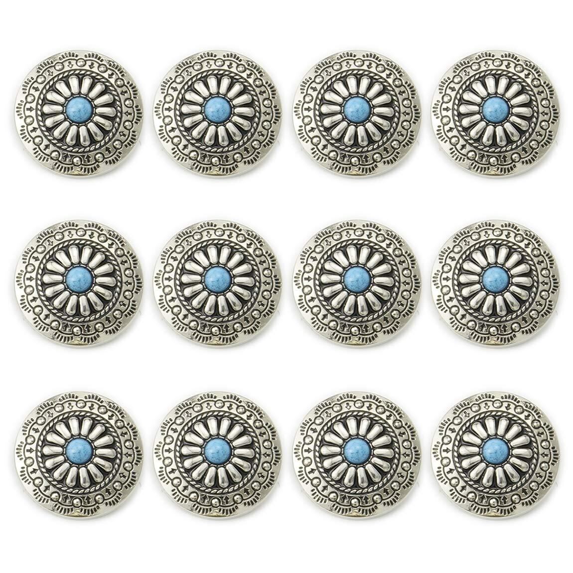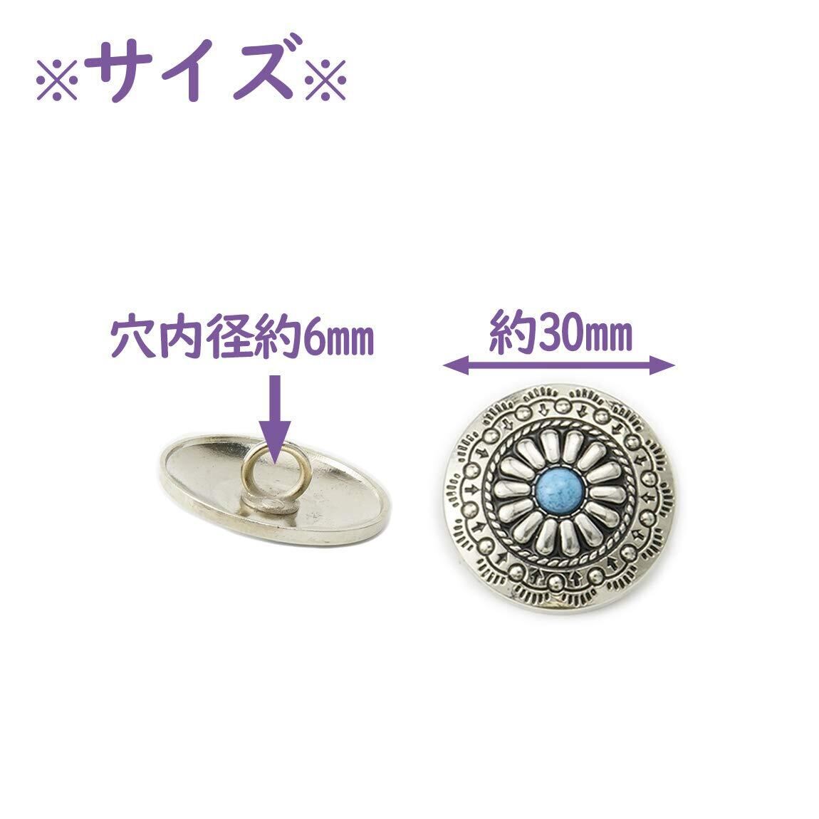 コンチョ ボタン 12個セット ターコイズ 30mm メタルボタン 足つき デージー柄 レザークラフト アクセサリー 手芸 (タイプB)