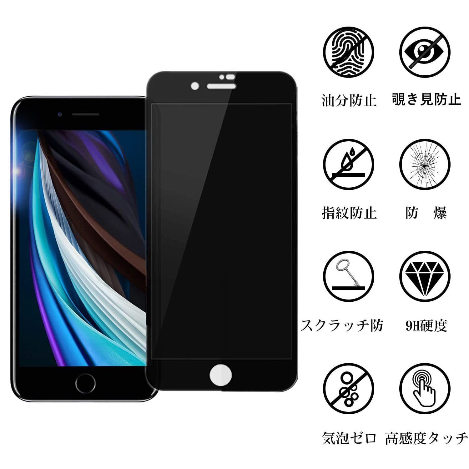 【覗き見防止】 iPhone SE2 ガラスフィルム iphonese2 フィルム のぞき見防止 第2世代 専用 iphoneSE2 保護ガラス アイフォンse2 ガラスフィルム のぞき見 【貼り付け簡単/気泡ゼロ/割れない】【2枚入】
