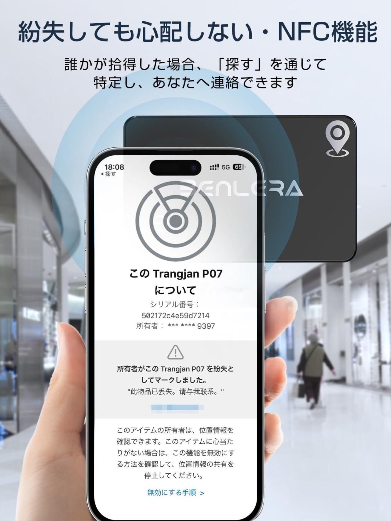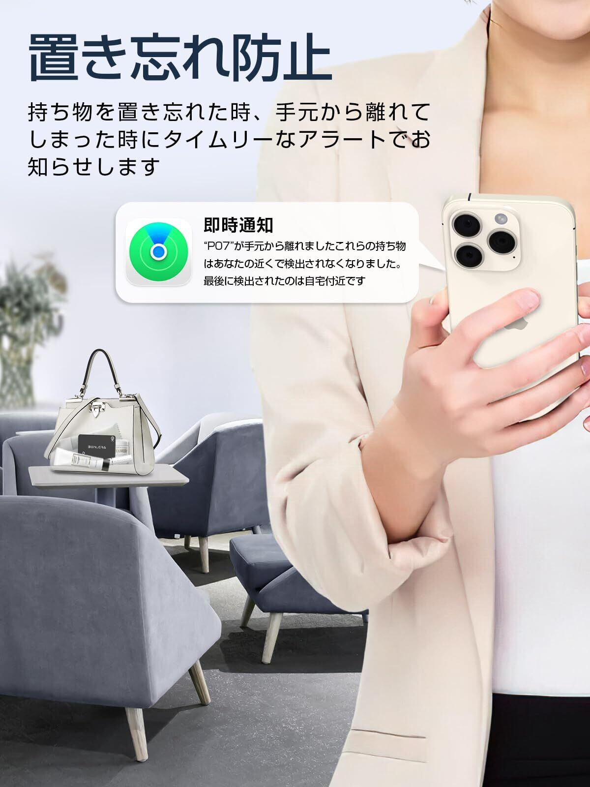 【プライバシー保護】お客様のプライバシーとセキュリティを最優先に考えています。すべての通信は暗号化され、位置情報や探す履歴は保存されません。【内蔵NFC機能】スマートタグを紛失した場合、安心して使用できる紛失モードを設定することができます。誰かがスマートタグを見つけたら、NFCを介してお客様と連絡を取ることができます。