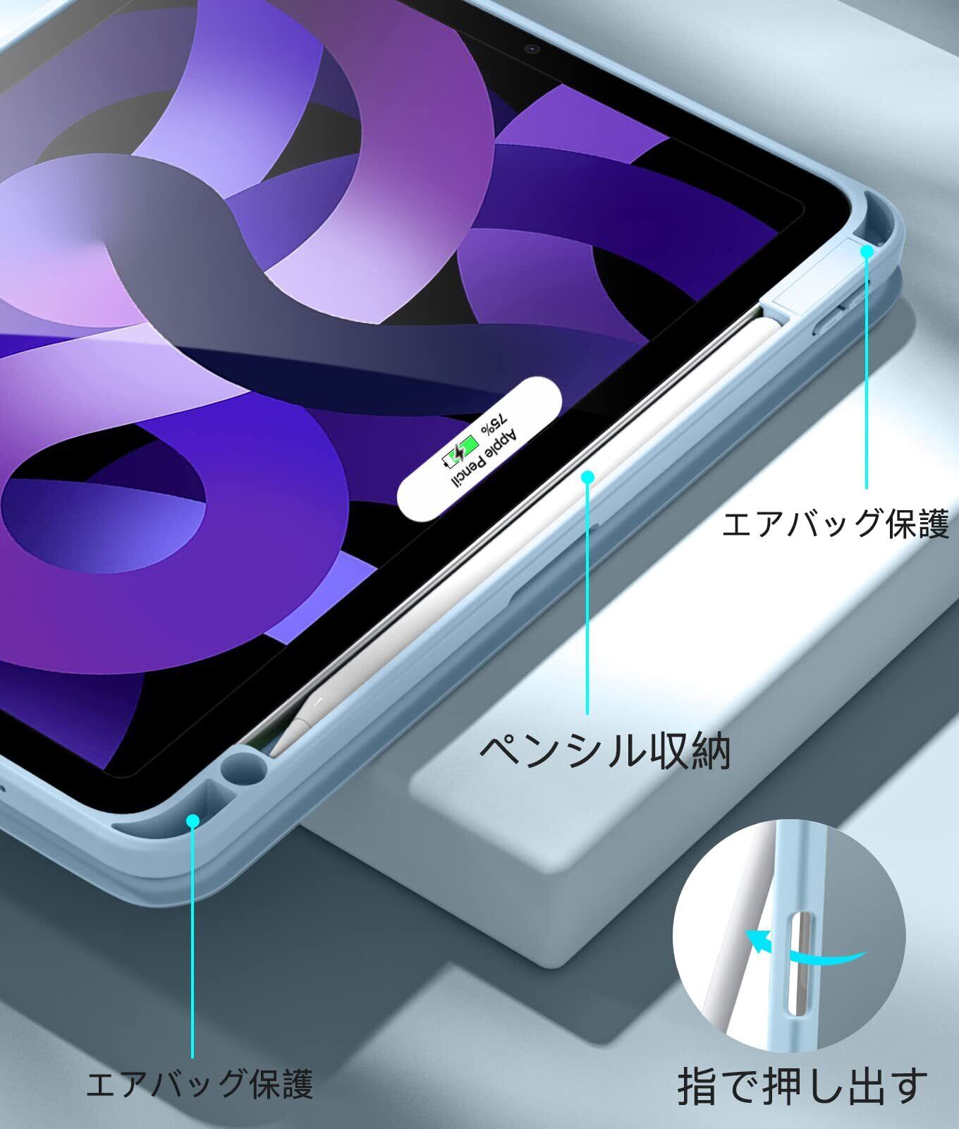 ✫【対応Apple Pencil収納】 対応iPad air5/4 ケースは便利なペンホルダーが付き、ペンシル紛失せずご安心利用頂けます。また、対応Apple Pencil 2 ワイヤレス充電も可能なので、収納や持ち運びに便利です、いつでもどこでも対応iPadを快適に使えます。