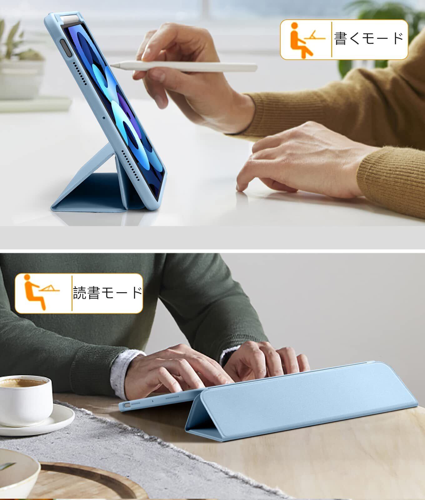 ✫【透明バックカバー】対応iPad air 11インチ ケースの表面はPUレザー素材を利用して、軽量、超薄を備えます。ポリカーボネート素材を採用している透明バックカバーは汚れや傷つけなどを防止するだけでなく、対応iPad本体の色と美しさも活かせます。透明バックカバーの枠は柔軟な TPUを採用して、取り付けも簡単にできます。フロントカバー内部材質はマイクロファイバーで、摩擦によって発生する傷を抑え、液晶画面を保護しきれいに保ちます。