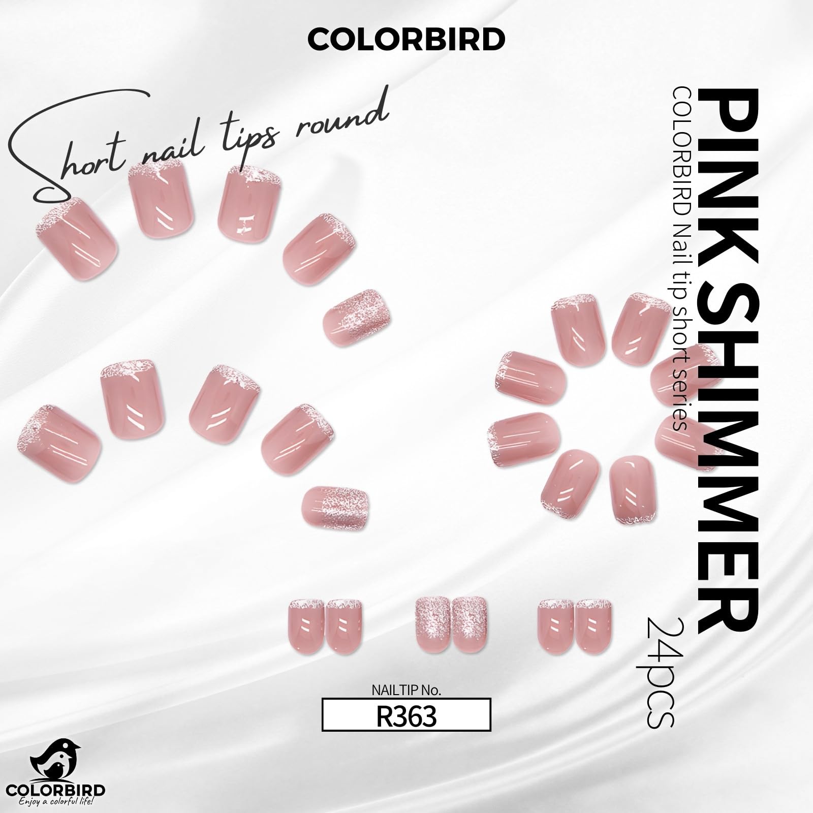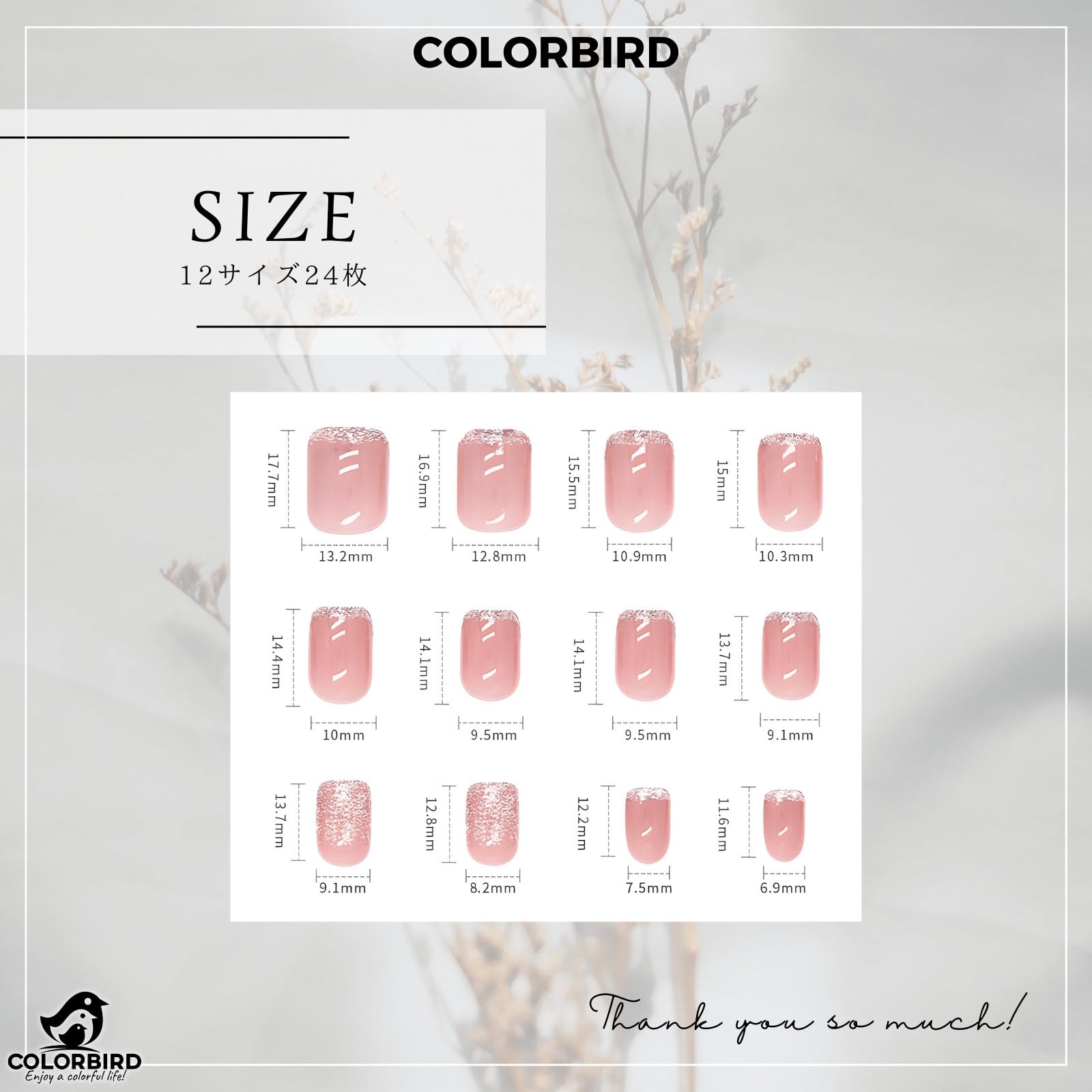 COLORBIRD ネイルチップ ショート 24枚 ピンク フレンチ ネイル 付け爪 チップ 短め 可愛い スクエアオフ (R363)
