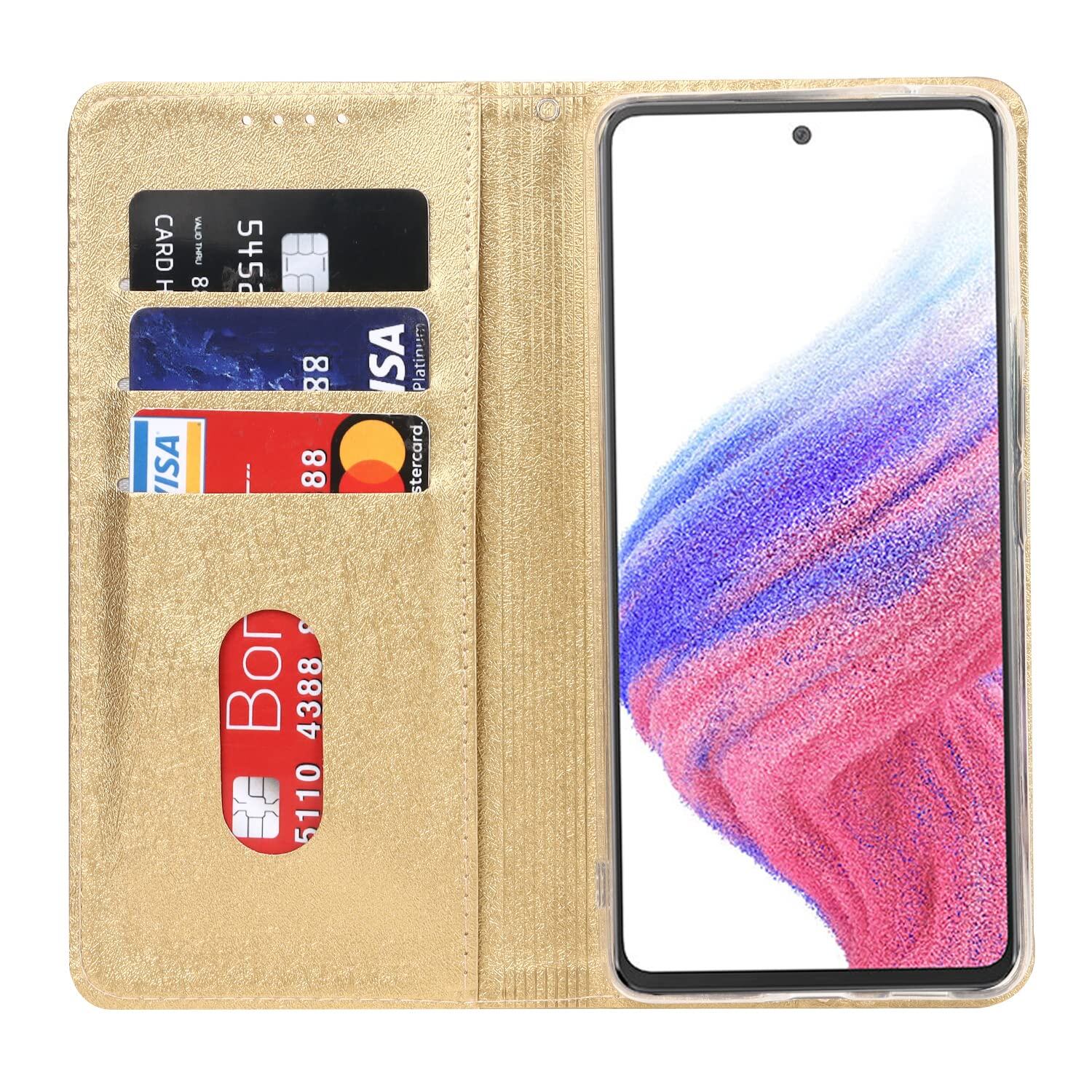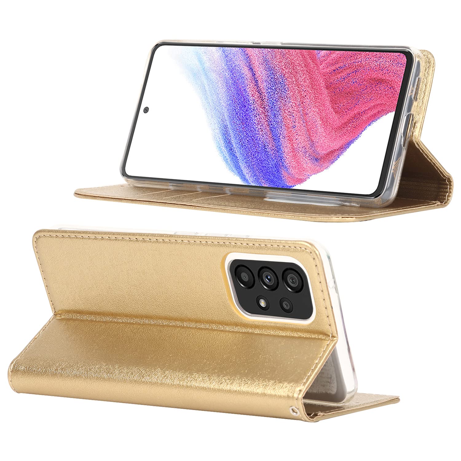 【新着商品】Pelanty Galaxy A53 5G ケース SC-53C SCG15 ケース手帳型 Samsung Galaxy A53 5G 財布型カバー case PUレザー 薄型 スマホケース ストラップ付き ベルトなし カード収納 マグネット式 スタンド機能 サムスン ギャラクシーA53 5G 携帯カバー 滑り止め 全面保護 耐衝撃 軽量 (ゴールド) | ニコニコSHOP