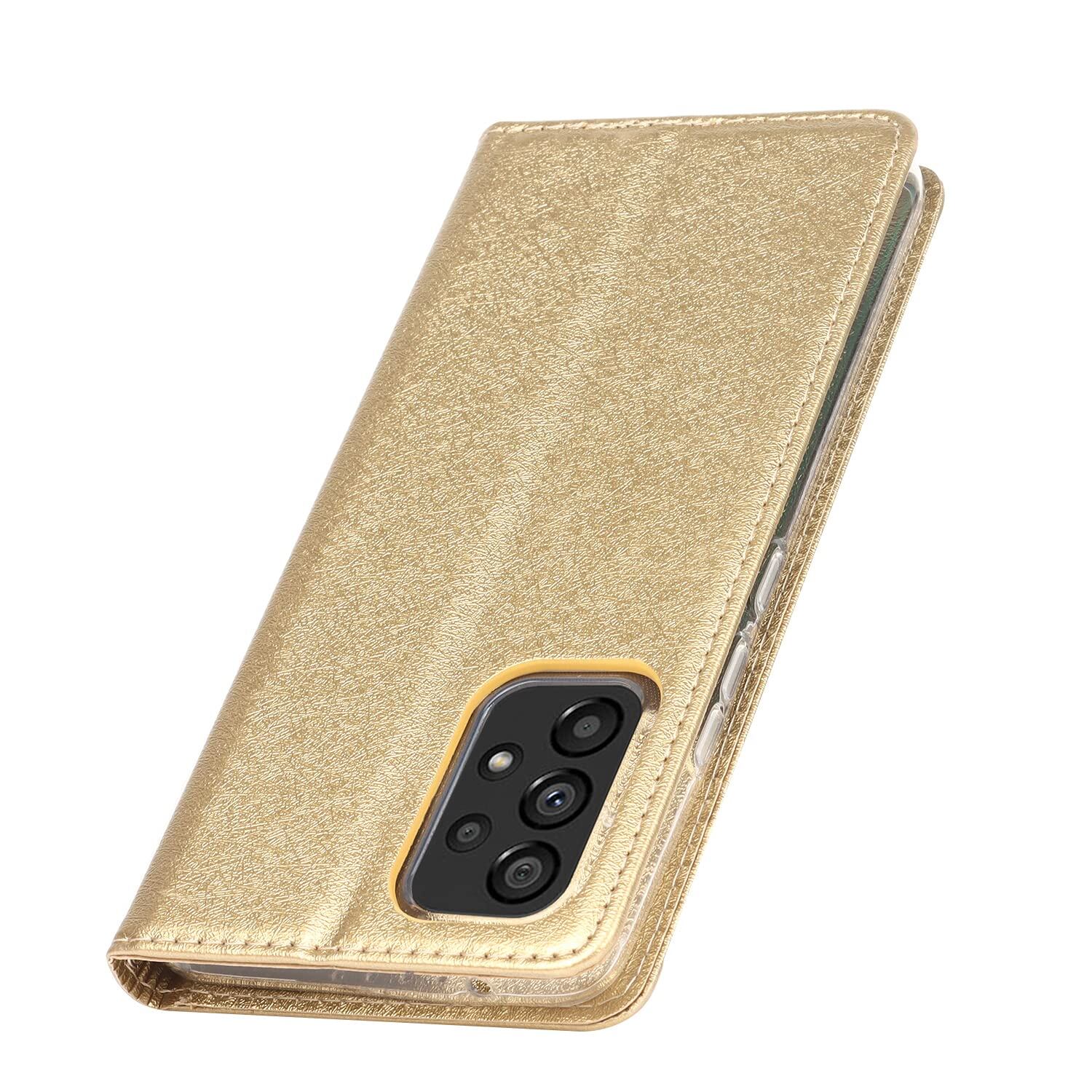 Pelanty Galaxy A53 5G ケース SC-53C SCG15 ケース手帳型 Samsung Galaxy A53 5G 財布型カバー case PUレザー 薄型 スマホケース ストラップ付き ベルトなし カード収納 マグネット式 スタンド機能 サムスン ギャラクシーA53 5G 携帯カバー 滑り止め 全面保護 耐衝撃 軽量 (ゴールド)