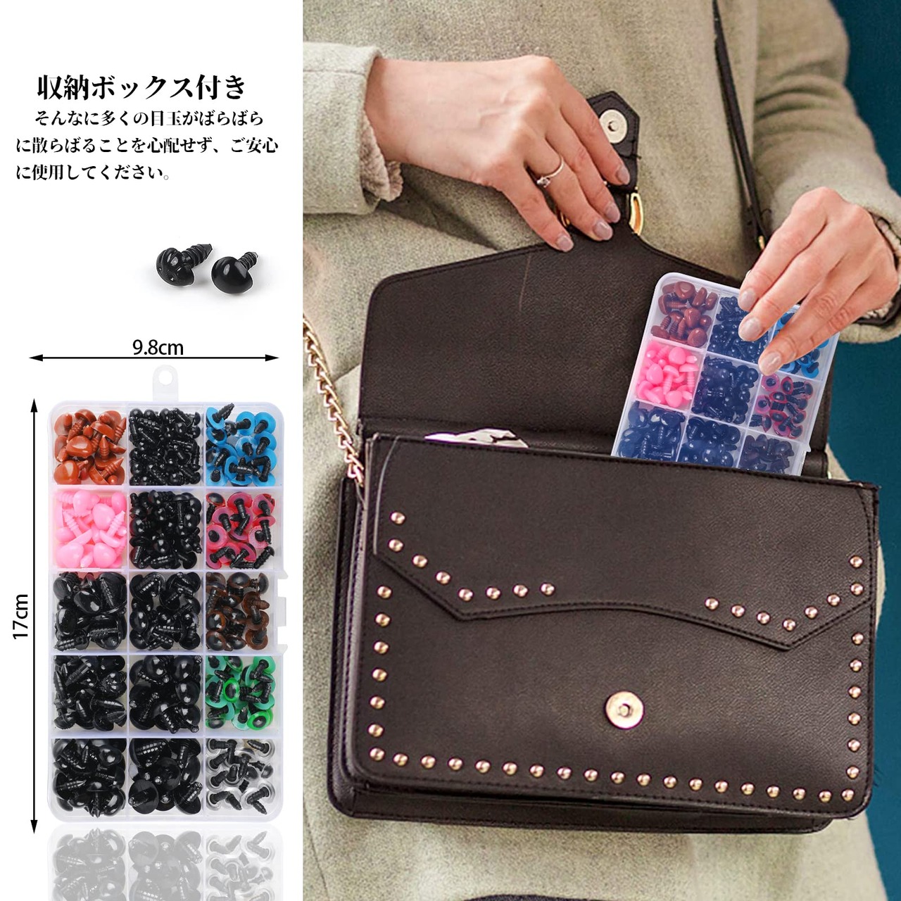 【560枚入り】10種類のさし目(その中に黒いさし目は5サイズがあります。)、5種類のさし鼻。いろんなサイズと十分な量があるのでご自由に使用できます。プラスチック製の収納ボックスが付いておるから、色んな目玉をちゃんと収めています。そんなに多くの目玉がばらばらに散らばることを心配せず、ご安心に使用してください。