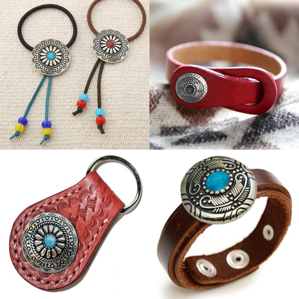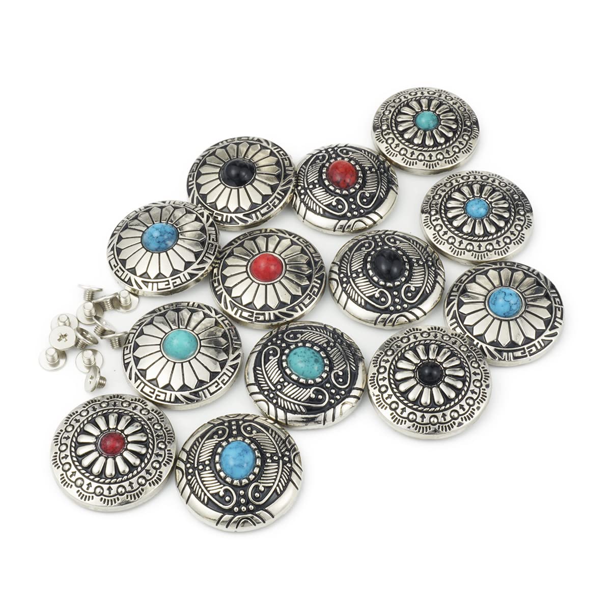 コンチョ ボタン 4色12個セット ターコイズ ネジ式 30mm レザークラフト 財布 手芸