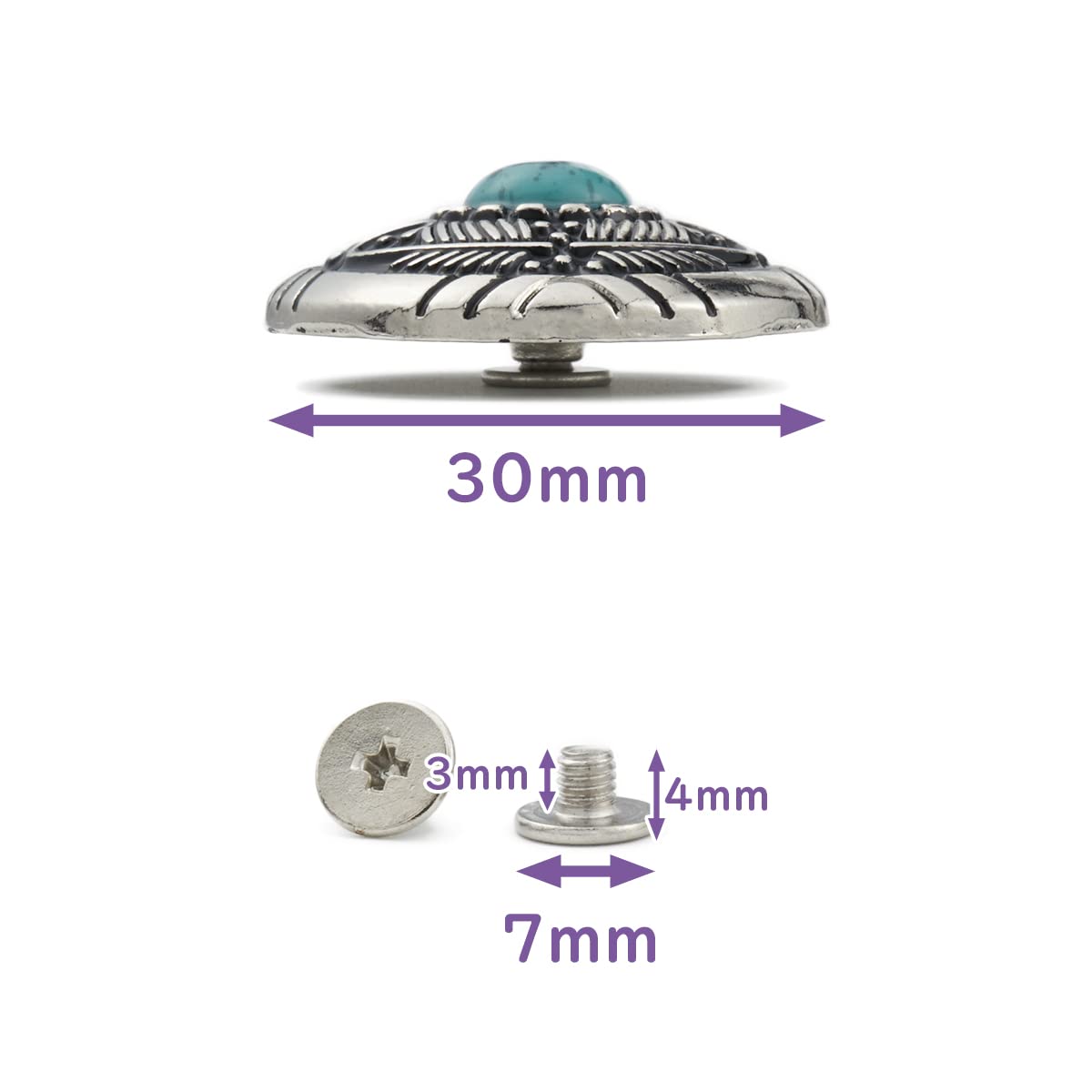 材質:合金 コンチョのサイズ:直径約30mm カラー:シルバー仕上げ(ターコイズブルー・コーラルレッド・オニキスブラック・グリーン)