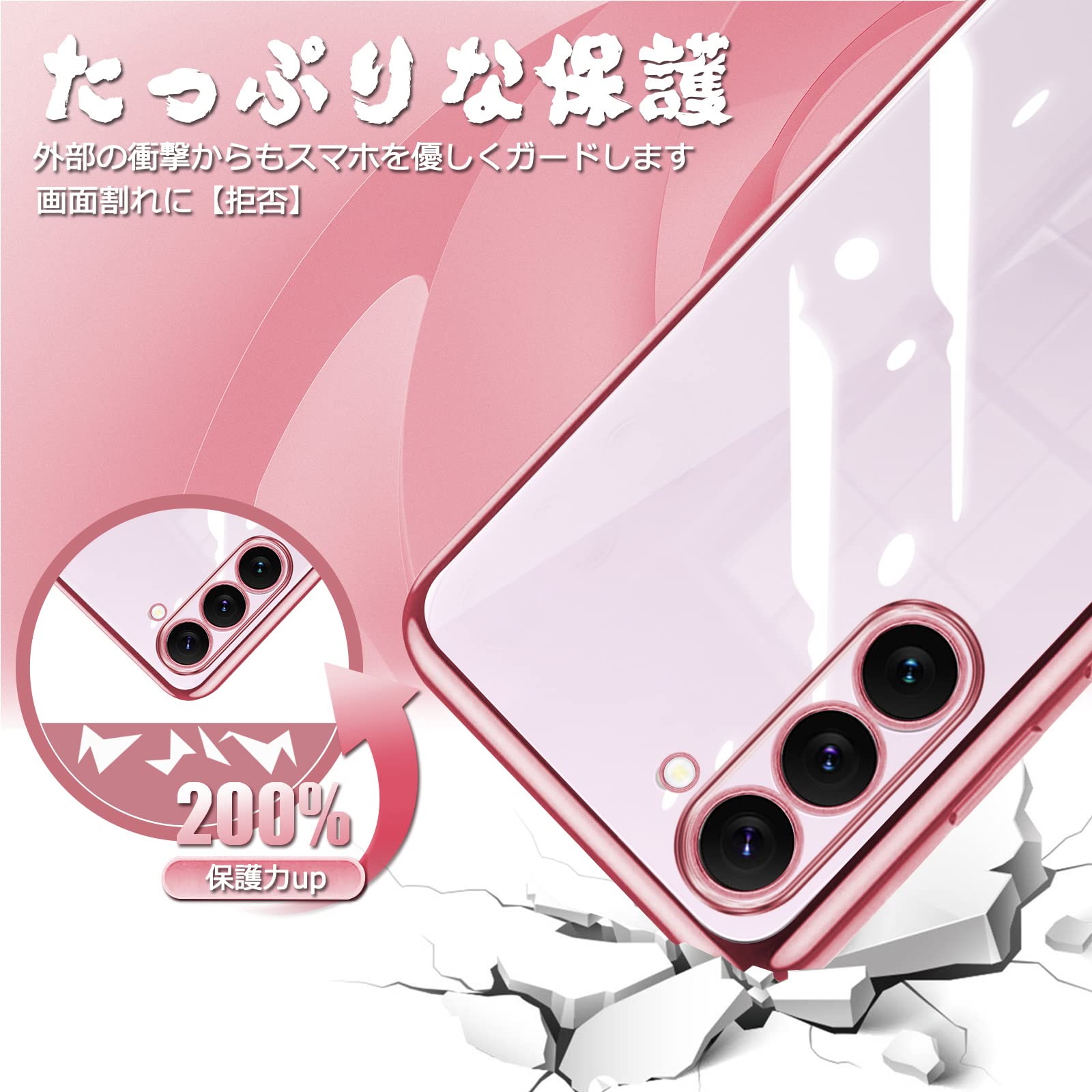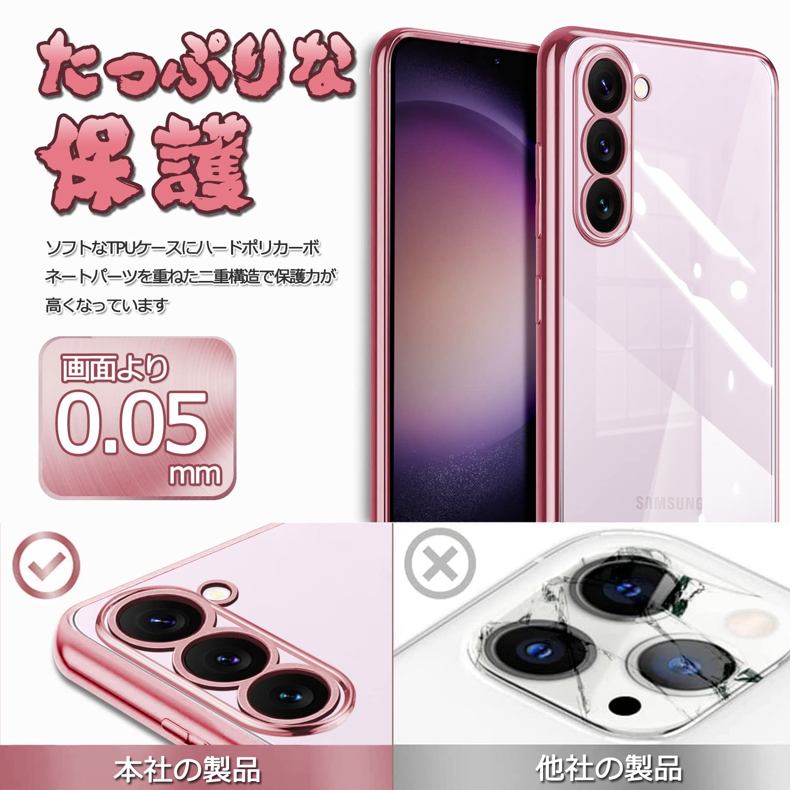 Samsung Galaxy S23 ケース クリア SC-51D SCG19 カバー 透明 TPU シリコン 耐衝撃 メッキ加工 薄型 軽量 ソフトカバー ストラップホール ギャラクシー S23 スマホケース (ローズゴールド)