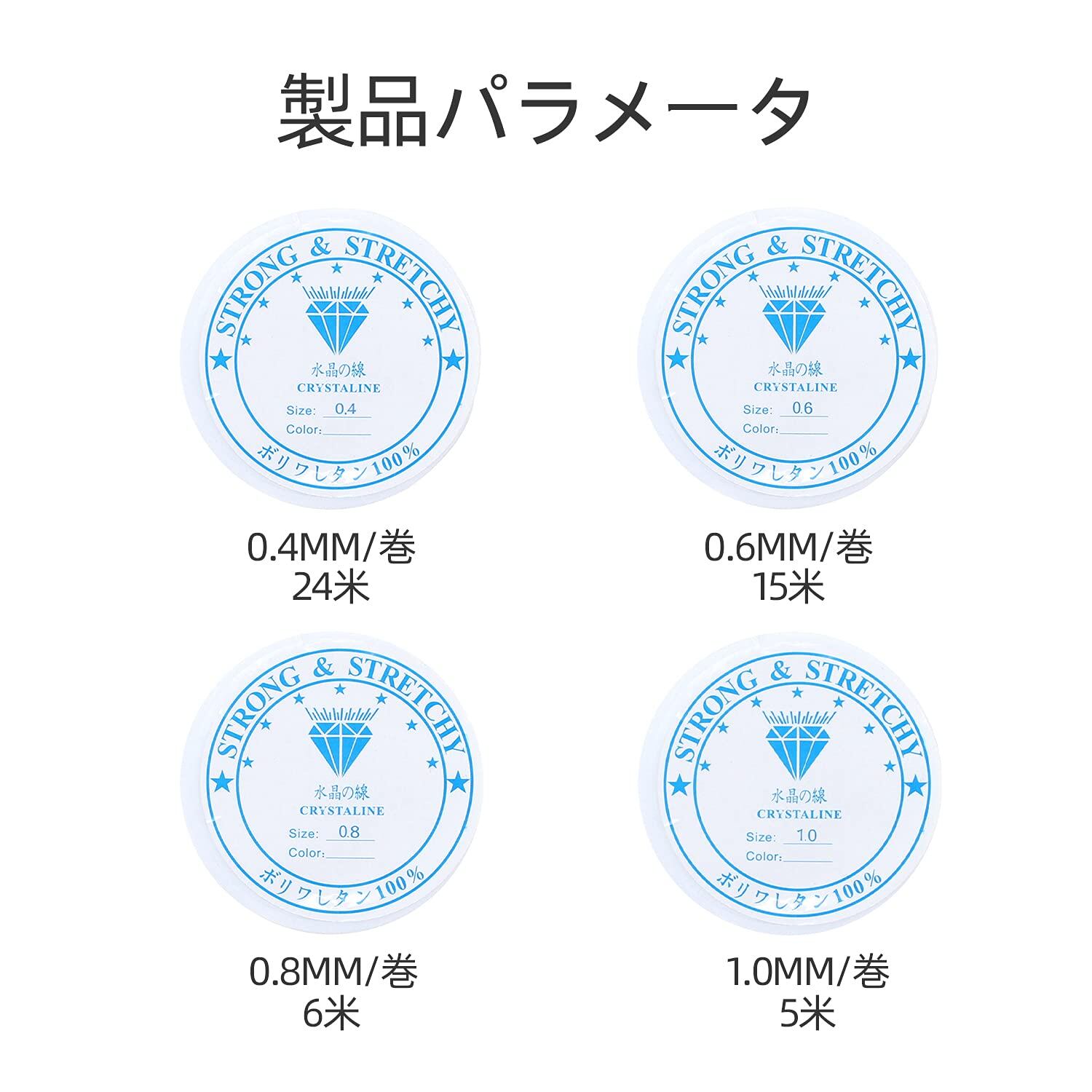 RICISUNG シリコンゴム ブレスレット用 (4個) 透ゴム 0.4mm、0.6mm、0.8mm、1mmサイズ 水晶の線 天然石 パワーストーン用