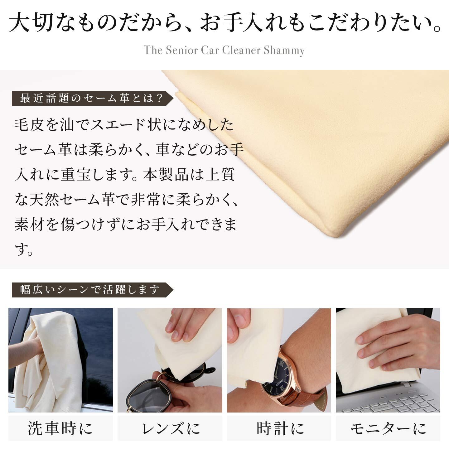 毛皮をスエード状になめしたセーム革は柔らかく、細かな傷が付きにくい素材です。 上質な天然セームを使用した本製品は非常に柔らかく、吸水性と耐久性に優れています。