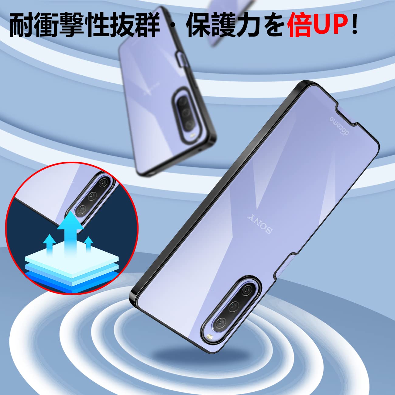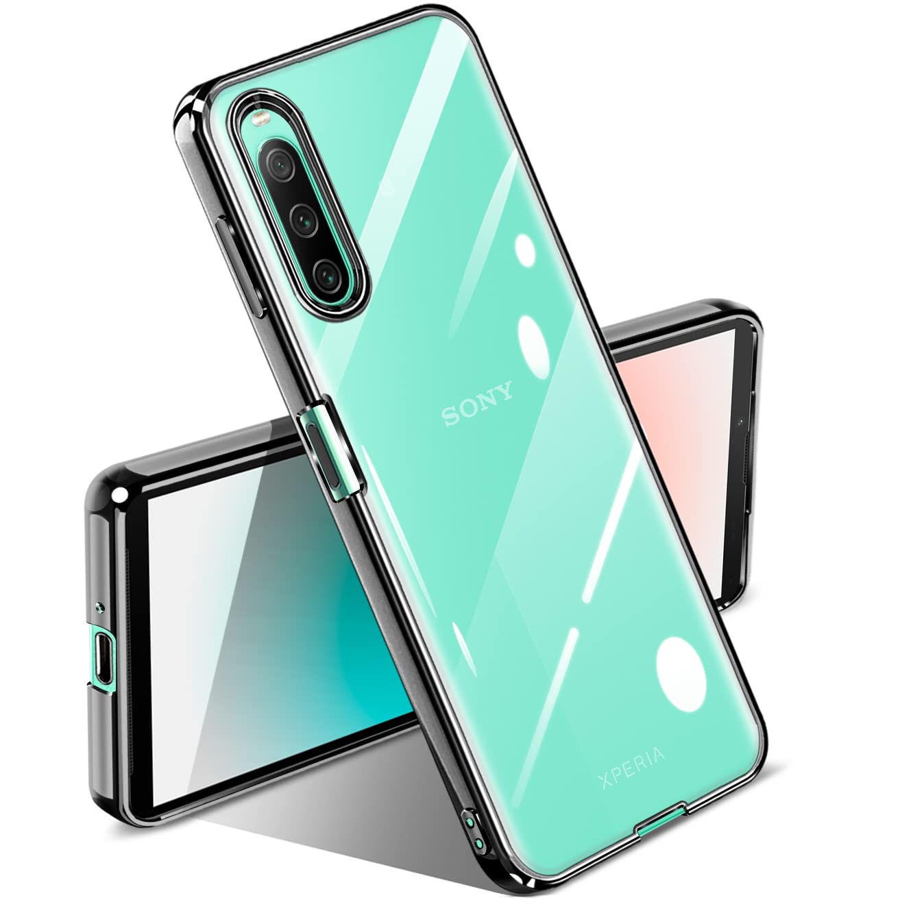Xperia 10 IV ケース クリア 薄型 耐衝撃 SO-52C SOG07 カバー 透明 エスクペリア10IV TPU 軽量 メッキ加工 ソフトケース 人気 保護カバー(ブラック)