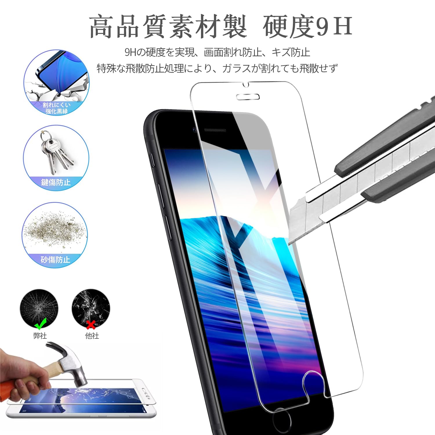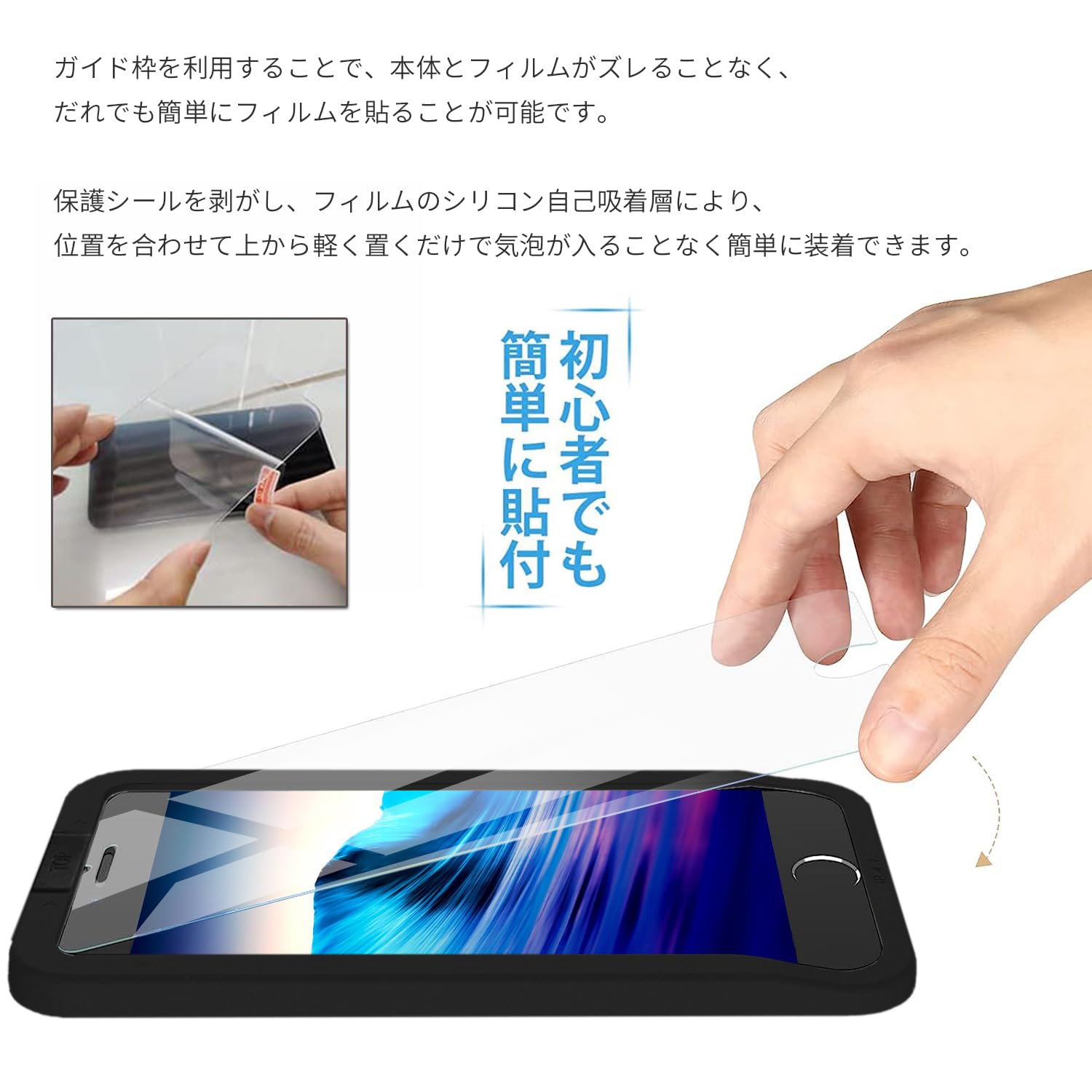 【2枚入り】ガラスフィルム iPhone SE第3世代 / SE第2世代 iPhone 8/7用 4.7インチ対応 高透過率 液晶保護フィルム 硬度9H強化ラス 指紋防止 飛散防止 気泡防止 ガイド枠付き 貼り付け簡単