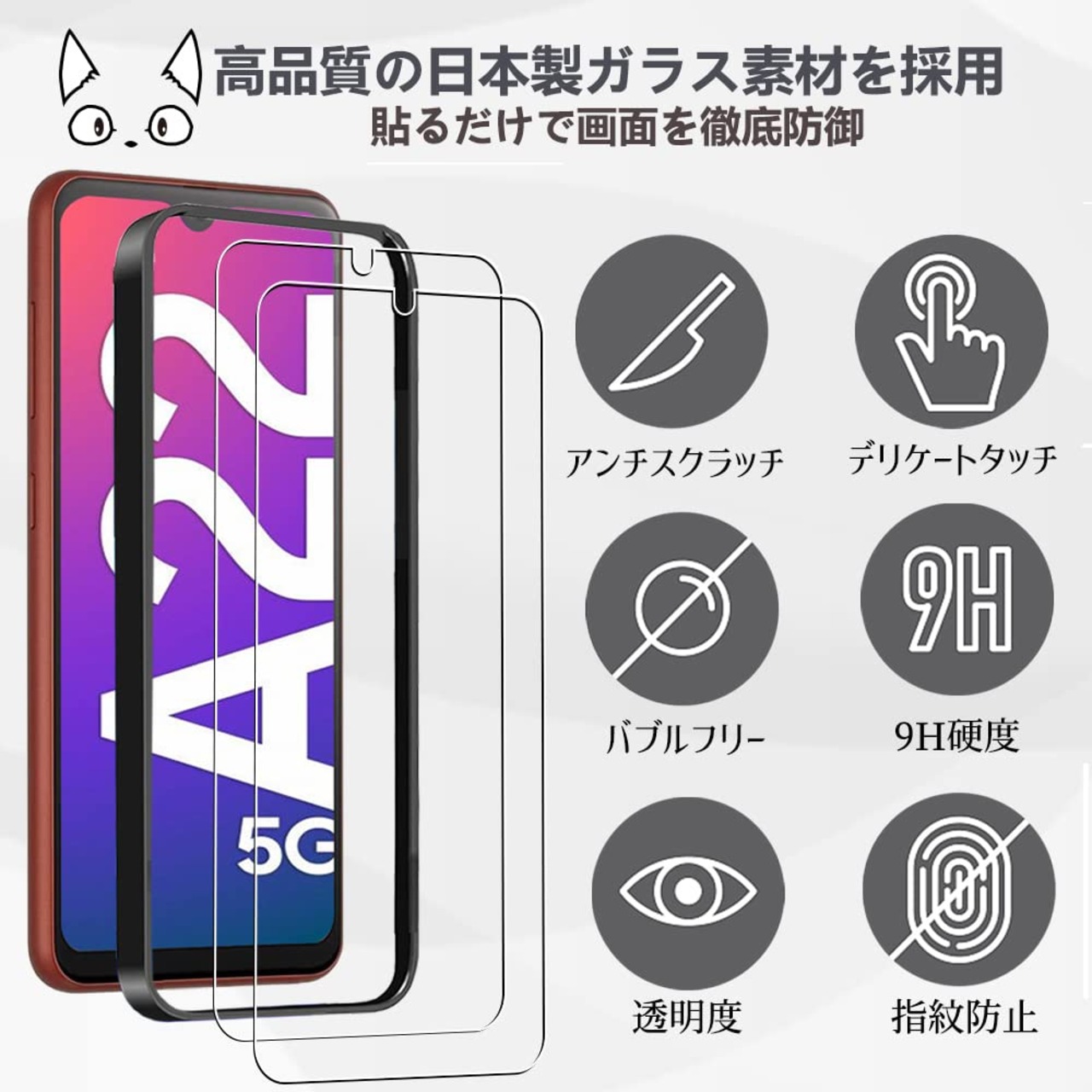 ◉【セット内容】Galaxy A22 5G SC-56B / Galaxy A23 5G SCG18 用のガラスフィルム*2枚、フィルム貼り道具*2 、ガイド枠付き*1。