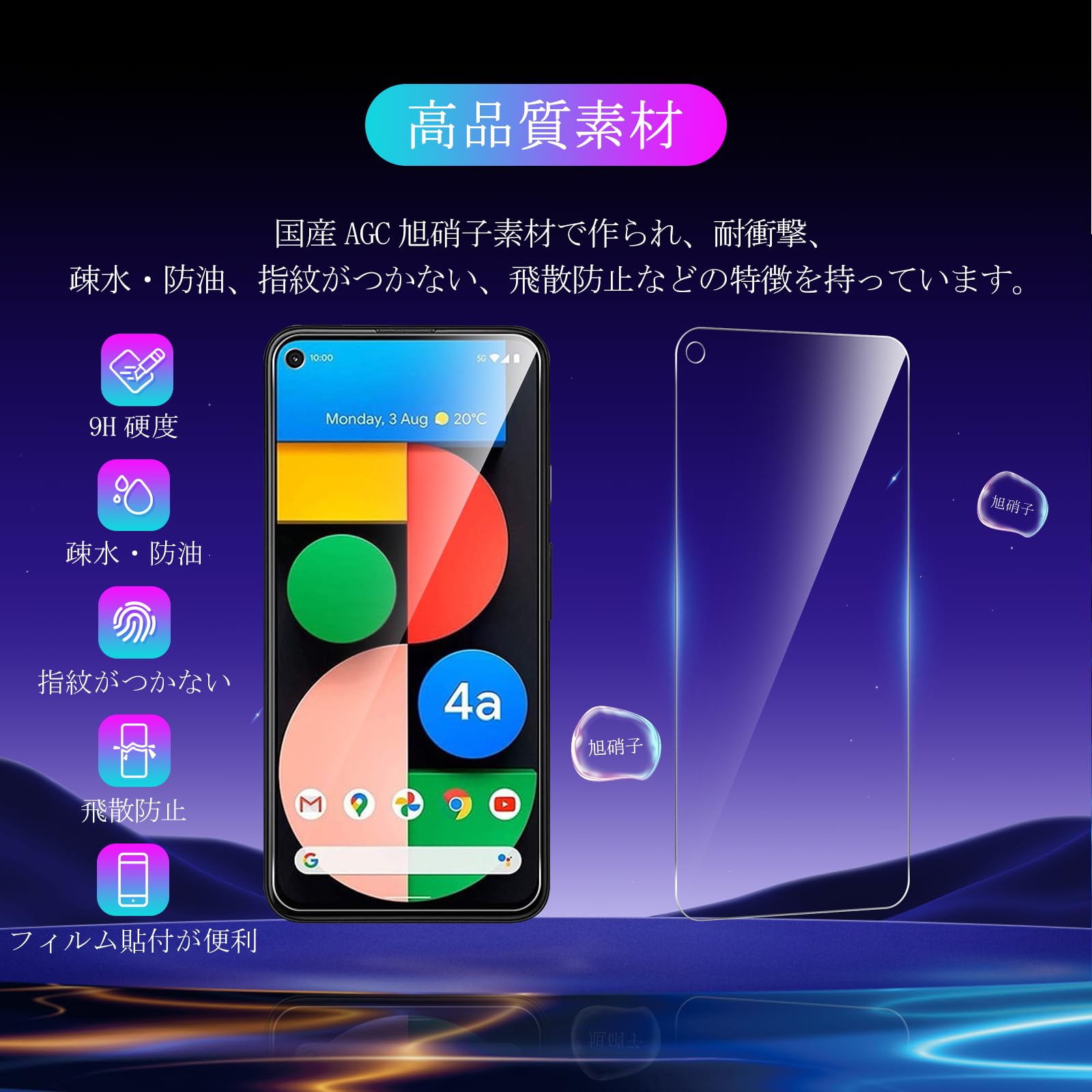 【在庫セール】対応 Google Pixel 4a 5G フィルム 【2+2枚セット- AGC旭硝子 - 高 品質】 対応 pixel 4a 5g ガラスフイルム 【2枚】+ レンズフィルム 【2枚】 ピクセル4a 5g 液晶保護フィルム pixel4a5g 強化ガラス さらさら 液晶 ガラス レンズ保護フィルム ケース 【 日本旭硝子素材採用 硬度9H 耐衝撃 飛散防止 超薄 厚さ0.26mm 気泡ゼロ 3D Touch対応 高感度 撥油性 指紋防止 超耐久 ラウンドエッジ加工 】