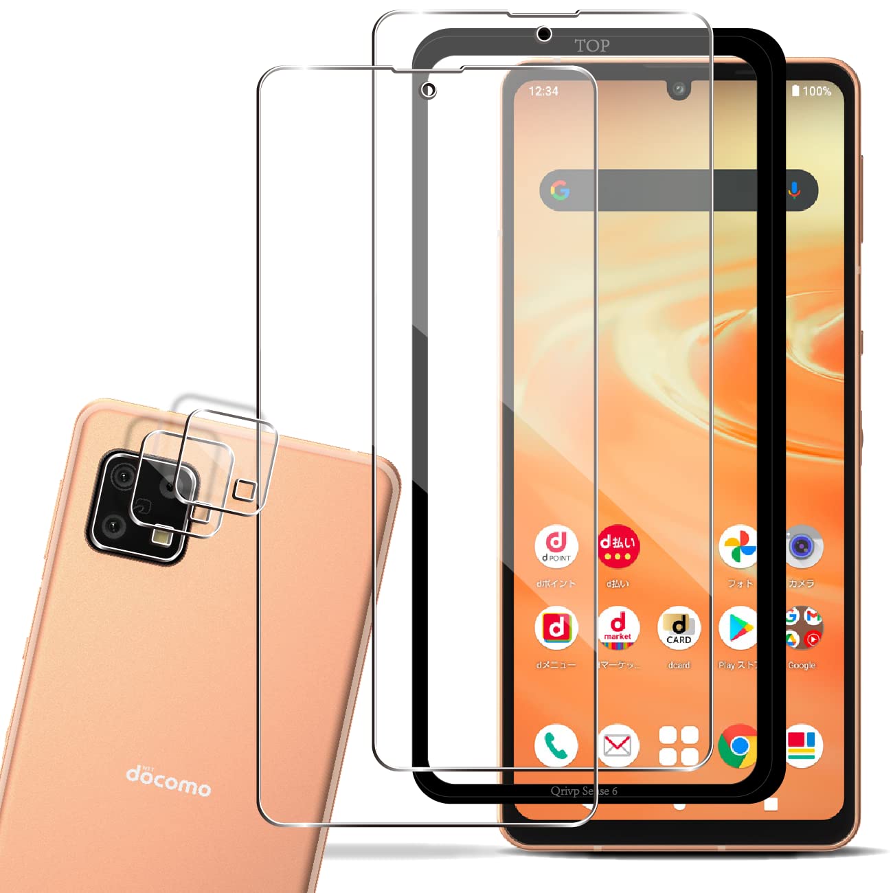 【対応機種】:AQUOS Sense6 専用に設計した強化フィルム.ご購入する前に、お使いの携帯電話の機種を確認してください。お得なセット:ガラスフィルム2枚+カメラ保護フィルム2枚(予備としても、家族で共用してもOK)【ご注意】携帯電話ケースに適用し、及び画面の端に多少隙間を空けて、画面端と携帯電話ケースが白い縁などで衝突することを防止します。気になさる方はご購入をお控えください。この理由による返金はいたしません。