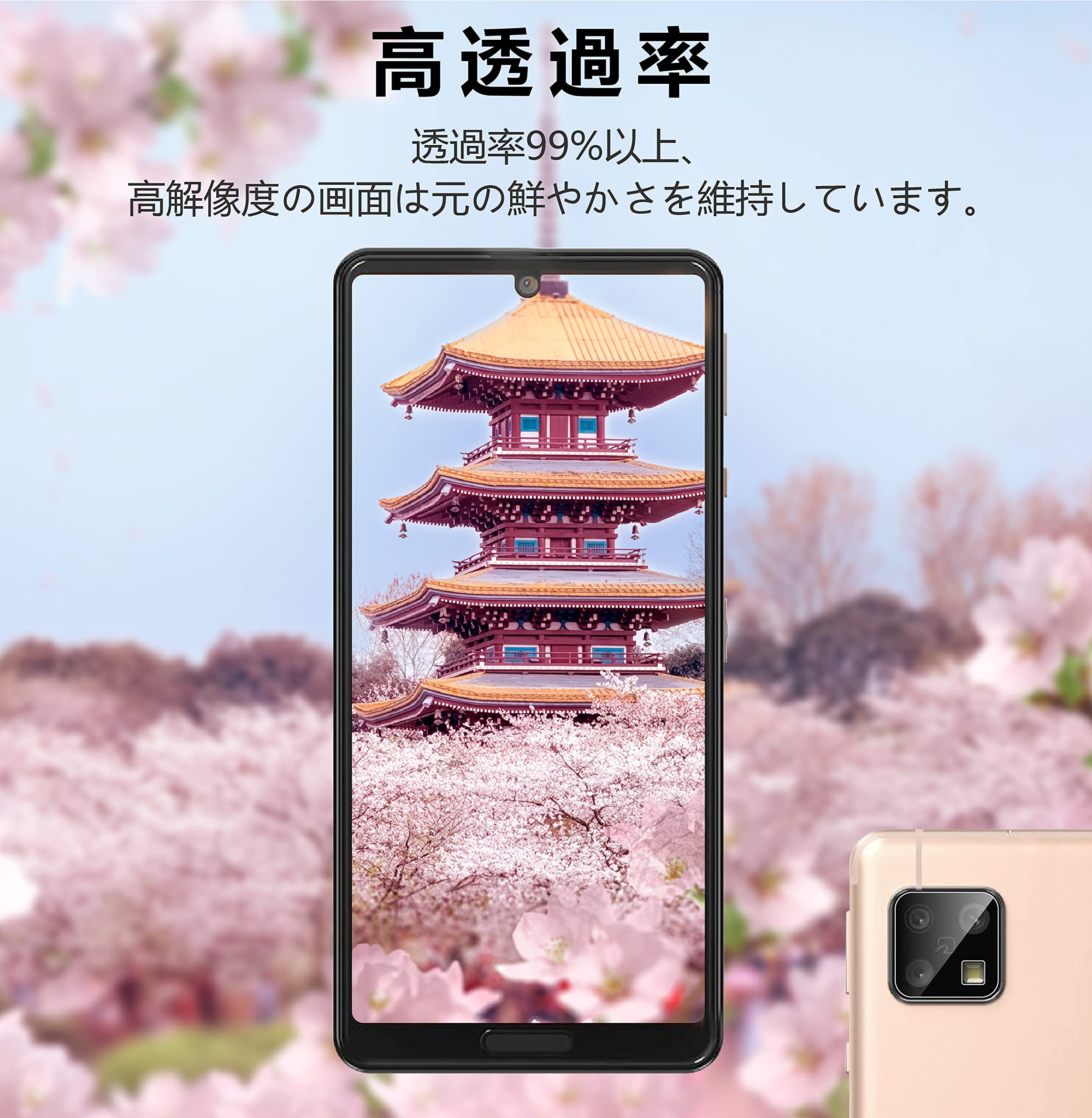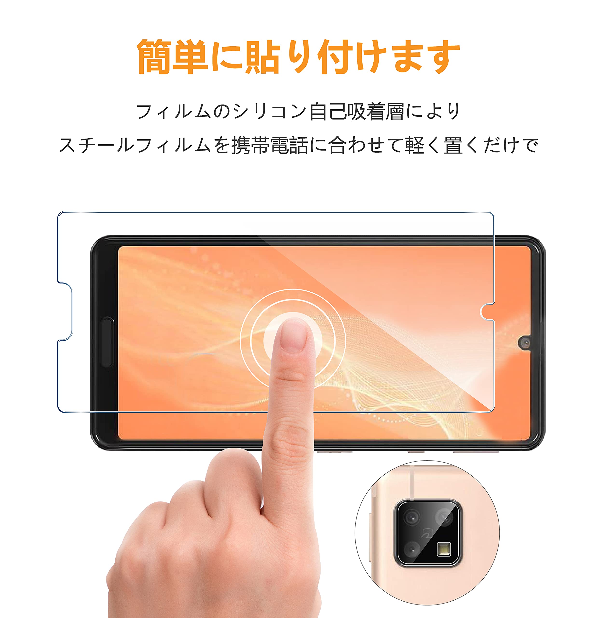 【対応機種】 sense4 / sense4 lite / sense5G 用 強化ガラス保護フィルム 2枚とレンズ専用のレンズフィルム2枚セットで、全面をしっかりと保護します。【高透過率】透過率は99%に達した、まるで何もつけていないかのようなクリアディスプレイをお楽しみいただけます。