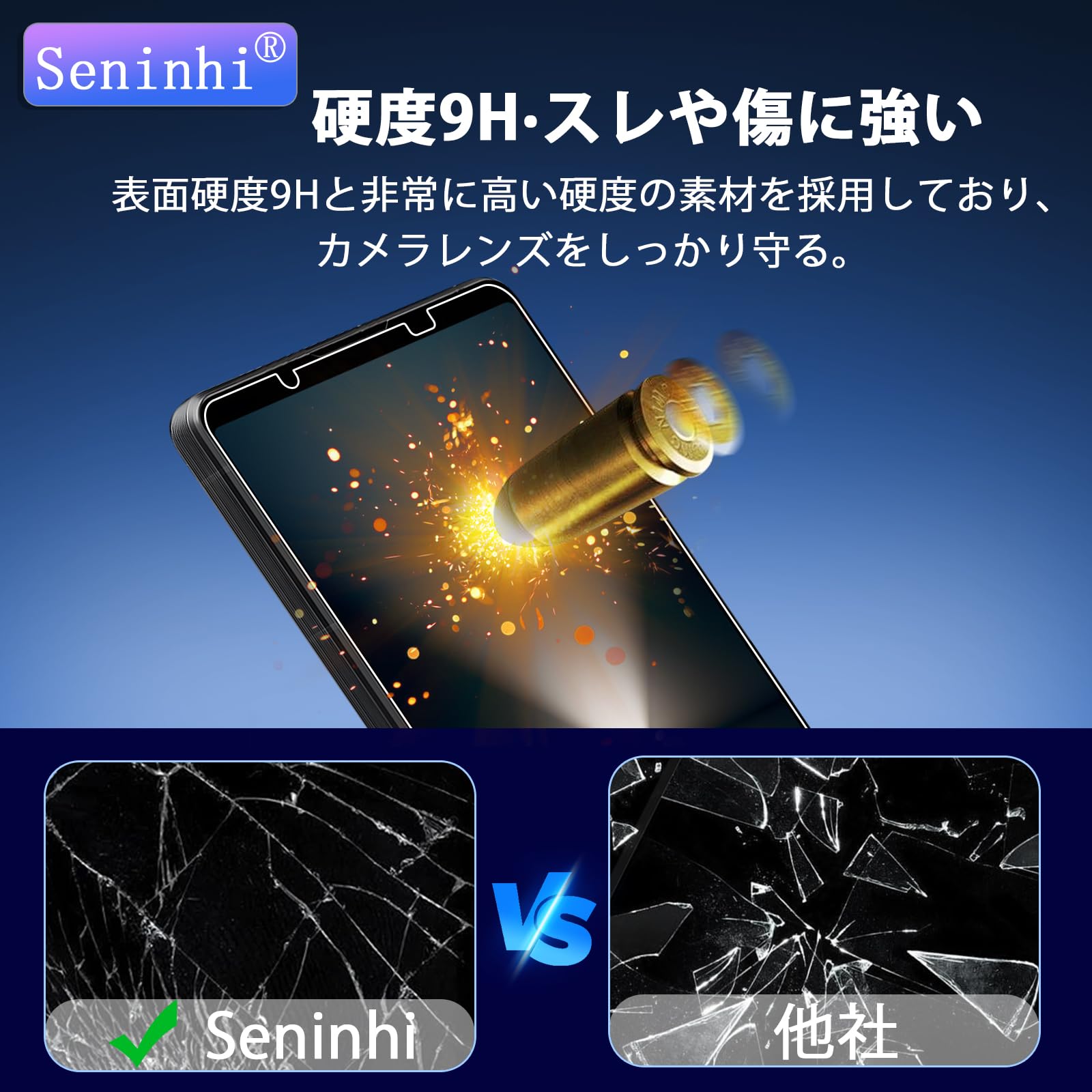 【国産旭硝子ガラス素材—硬さ9H】seninhi強化フィルムは国産旭硝子ガラスを使っており、4.5時間の高温焼入れ処理して、強化を繰り返し、硬さは業界トップレベルの9Hに達しました、通常の強化フィルム硬さの5倍の耐衝撃性に達して、いきなりショックの力を与えされても携帯電話の画面を最大限に保護します。しかもフイルムエッジ部分を2重に補強して、普段に使う場合一番割れやすいエッジ部分がもっと頑丈になり、更にガラスフィルムが割れても飛散防止設計したので、ユーザー様にもっと安心できる使用環境を築いております。