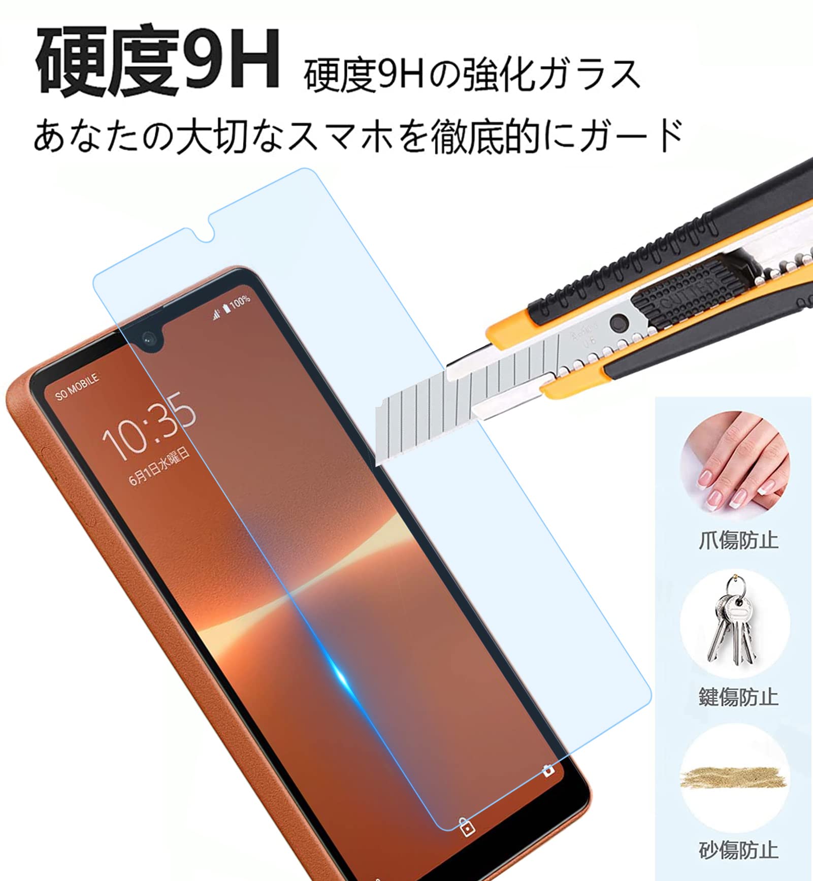 【9H硬度】レベルの9H硬度、ハードコーティング技術により、高品質な素材で衝撃を緩和し画面の破損を最低限まで抑えました。ご愛用のスマホをしっかり守ります。