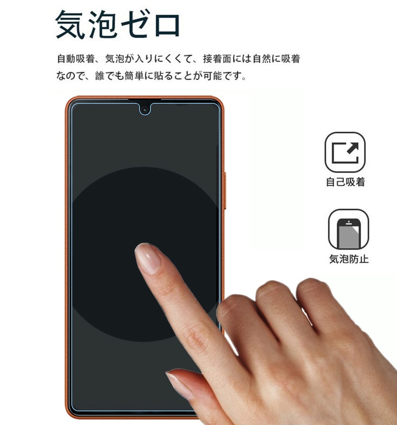 【簡単貼り付け 指紋防止】良質なAB接着剤を採用します。これは 貼りやすい自己吸着のシリコーン粘着シートです。 液晶にガラスフィルムを貼るだけで自己吸着できます。気泡が抜けやすく、誰でも簡単に貼り付けます。特殊なコーティング加工を施しましたので油や指紋など付いても軽く拭けば汚れはすぐに落ちます。