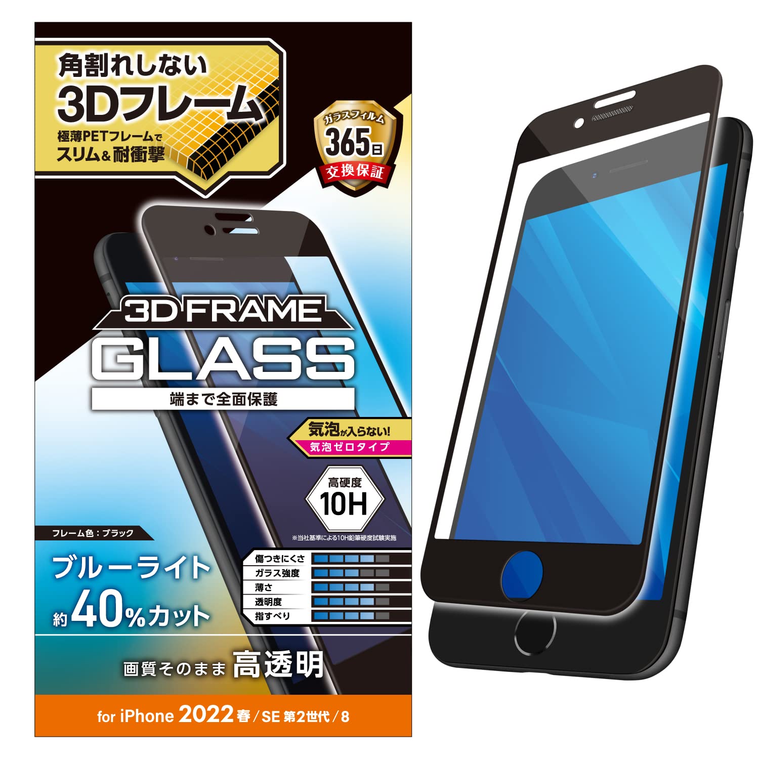 【2022最新】エレコム iPhone SE (第2世代/第3世代) / 8 / 7 / 6s / 6 用 フィルム フルカバーガラス フレーム付き ブルーライトカット ブラック PM-A22SFLGFBL | ニコニコSHOP