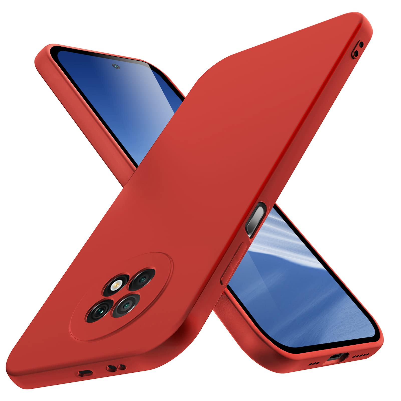 Redmi Note 9T 5G ケース シリコン 耐衝撃 tpu 薄型 スリム 磨り表面 指紋防止カバー 柔らかい裏地 Note 9t 5G カバー 耐衝撃 米軍MIL規格 ワイヤレス充電対応ストラップホール付き 黄ばみなし レンズ保護 滑り止め 柔軟性 擦り傷防止 赤N411-14