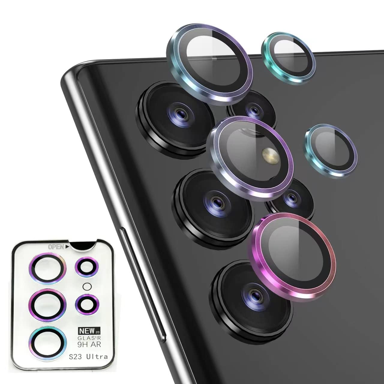 JFStene カメラ保護 フィルム Galaxy S23 Ultra SCG20/SC-52D 用 レンズ保護カバー ギャラクシー S23 ウルトラ 適用 アルミ合金製 9H硬度 耐衝撃 キズ防止 露出オーバー防止 衝撃吸収 高透過率 簡単貼付 ケースに干涉なし (Galaxy S23 Ultra 用 カラフル)