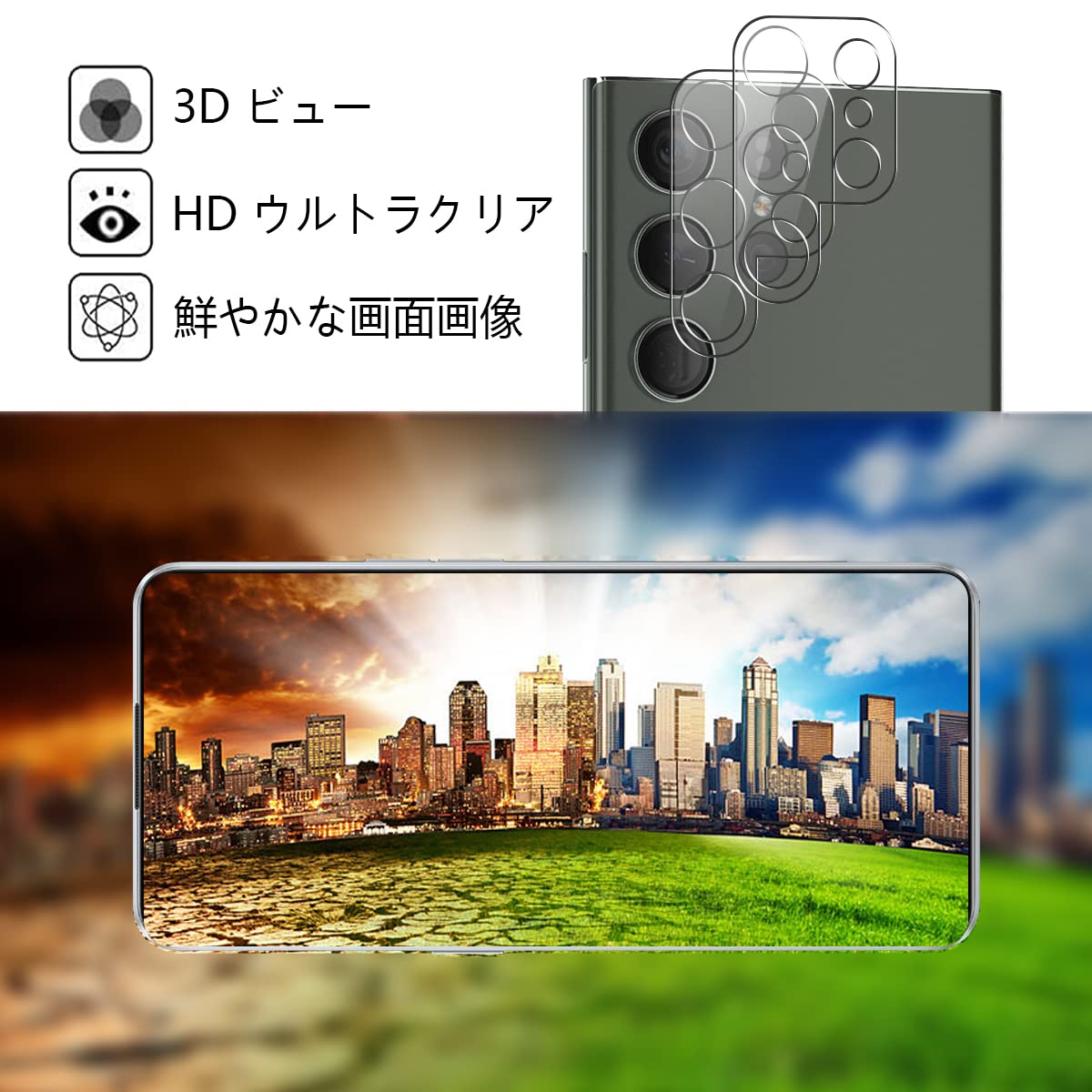 【対応機種】Galaxy S23 Ultra 専用設計、フィルム(2枚) +カメラフィルム(2枚) (製品の取扱説明書を含める)。
