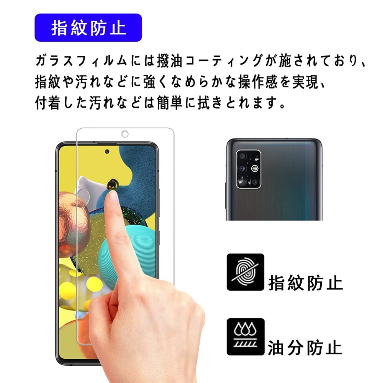 【2+2枚セット- 日本旭硝子素材】対応 Galaxy A51 5G SCG07 SC-54A ガラスフィルム (2枚) + レンズ保護フィルム (2枚) galaxy a51 5g フィルム さらさら 強化ガラス sc-54a 液晶保護フィルム 厚さ0.26 超薄 硬度9H 飛散防止 指紋防止 撥水撥油 耐衝撃 自動吸着 気泡ゼロ 貼り付け簡単 高感度 高透過率 ラウンドエッジ加工 3D Touch対応