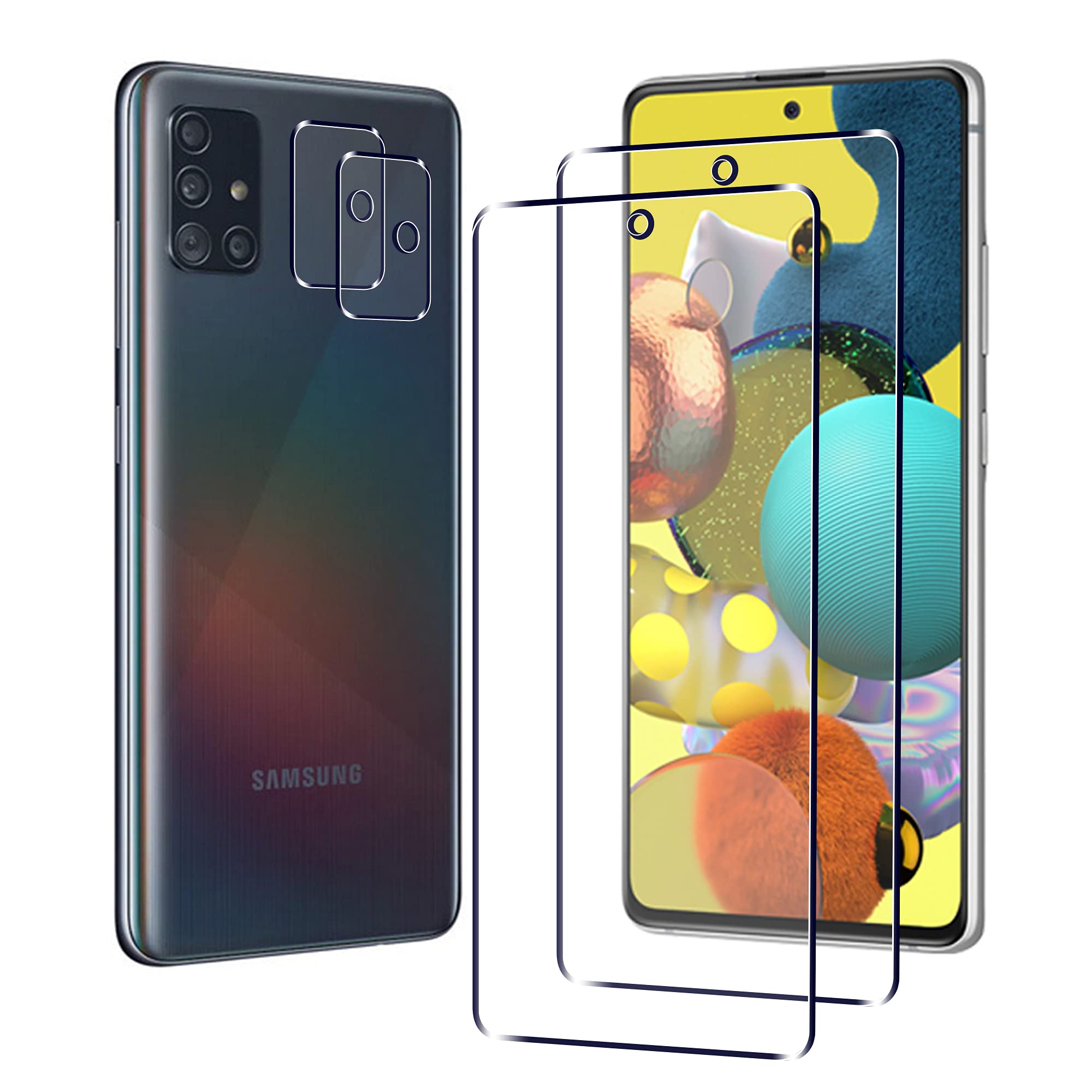 【新着商品】【2+2枚セット- 日本旭硝子素材】対応 Galaxy A51 5G SCG07 SC-54A ガラスフィルム (2枚) + レンズ保護フィルム (2枚) galaxy a51 5g フィルム さらさら 強化ガラス sc-54a 液晶保護フィルム 厚さ0.26 超薄 硬度9H 飛散防止 指紋防止 撥水撥油 耐衝撃 自動吸着 気泡ゼロ 貼り付け簡単 高感度 高透過率 ラウンドエッジ加工 3D Touch対応