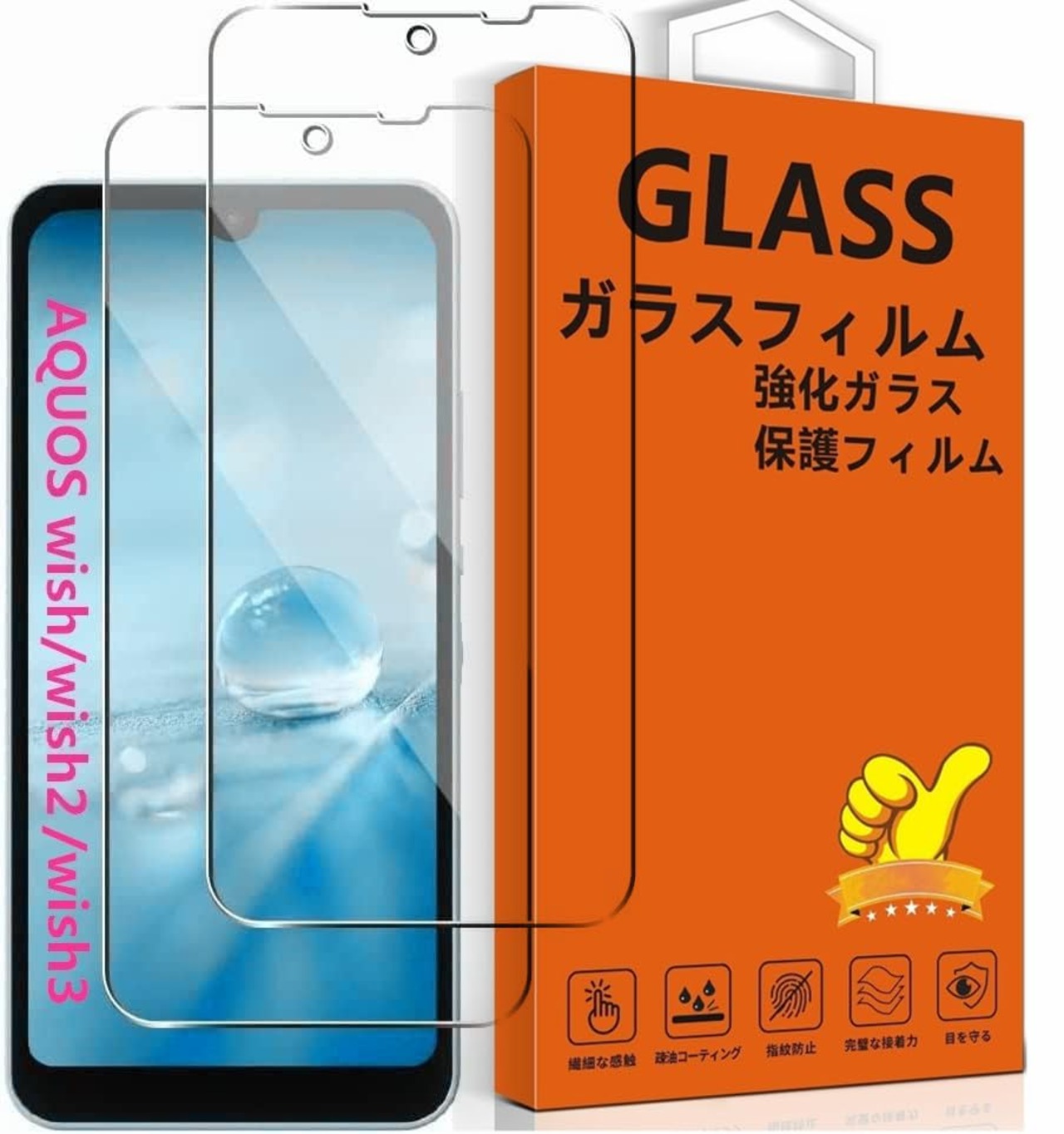 【2枚入り】対応 AQUOS wish / Wish2 / Wish3 ガラスフィルム 指紋ロック解除 AQUOSwish SH-G06 SH-53D A302SH SH-M25 SH-51C A104SH SH-M20 保護ガラス 強化ガラス 保護フィルム 液晶 ガラス フィルム【採用日本素材製】2.5Dラウンドエッジ加工 硬度9H 厚さ0.26mm 高感度 高い光透過率 指紋防止 気泡防止 飛散防止 自動吸着 AQUOS wish / Wish2 / Wish3 フィルム)