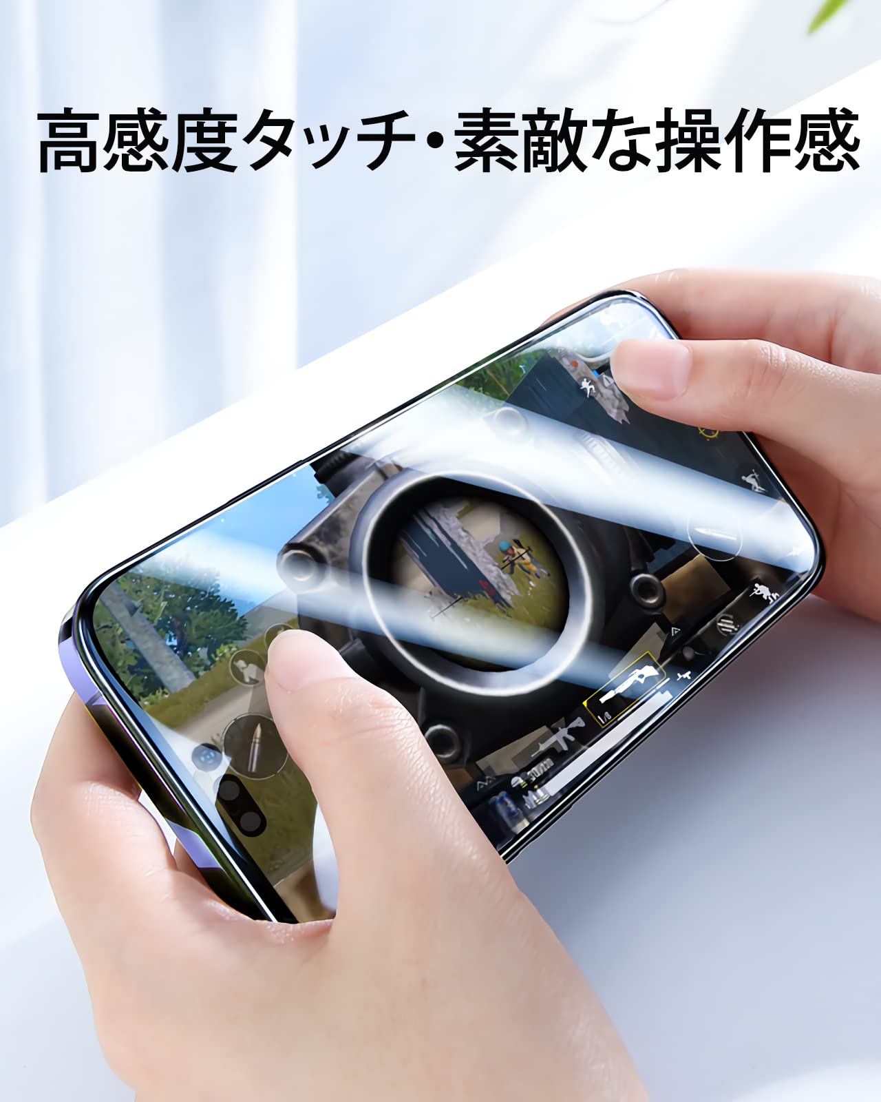 【指紋付着防止飛散防止】飛散防止加工されておりますので、万が一割れの場合でも、飛び散らず張り付いた安全の状態になります。 また、高耐久性防汚のフィルムに特殊コーティングにより指紋や汚れが付きにくくなっています。付着しても簡単に拭き取れます。 常に美しい画面と滑らかでよい操作が得られます。