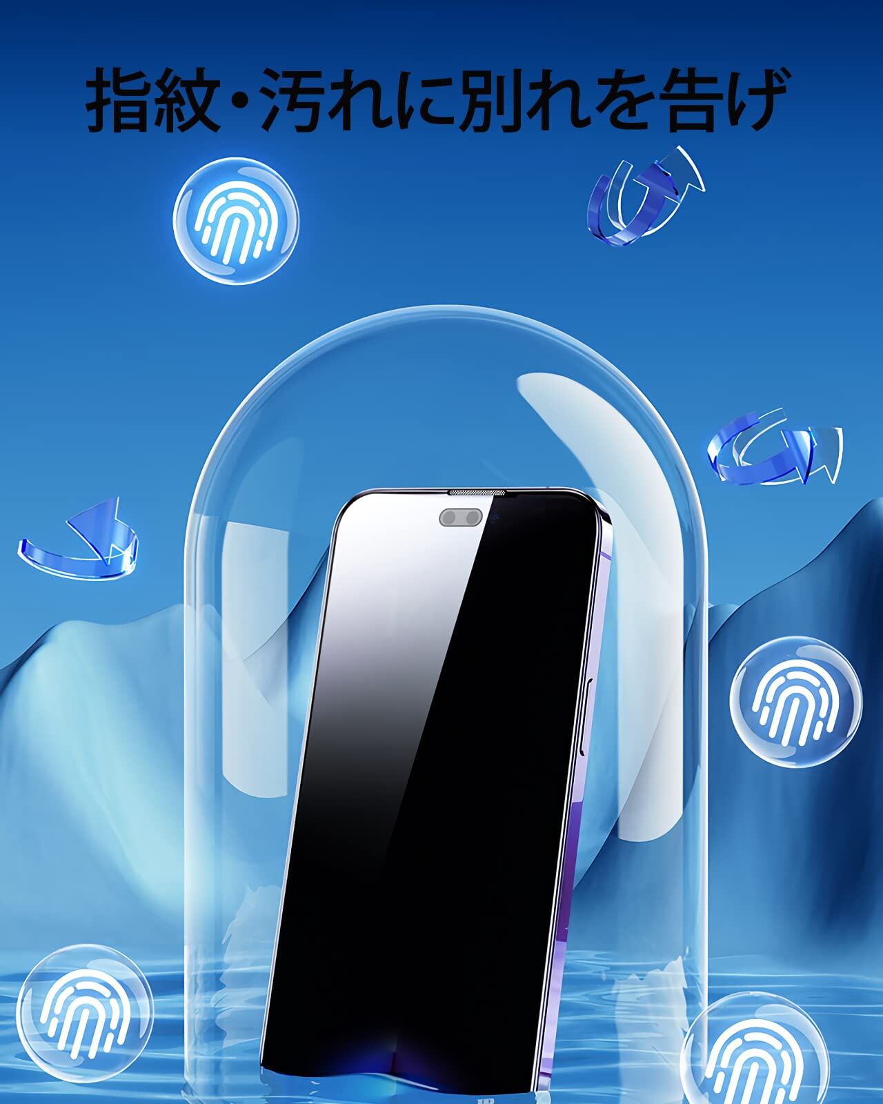 【覗き見防止】XINCHEN ガラスフィルム iPhone 14 Pro 用 プライバシー保護フィルム 全面保護 のぞき見防止 強化 ガラス 自動吸着(6.1インチ アイフォン14 Pro 用)2枚セット