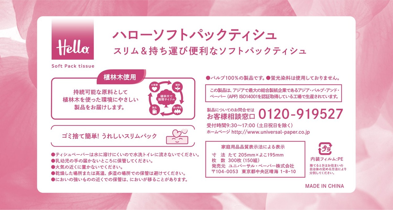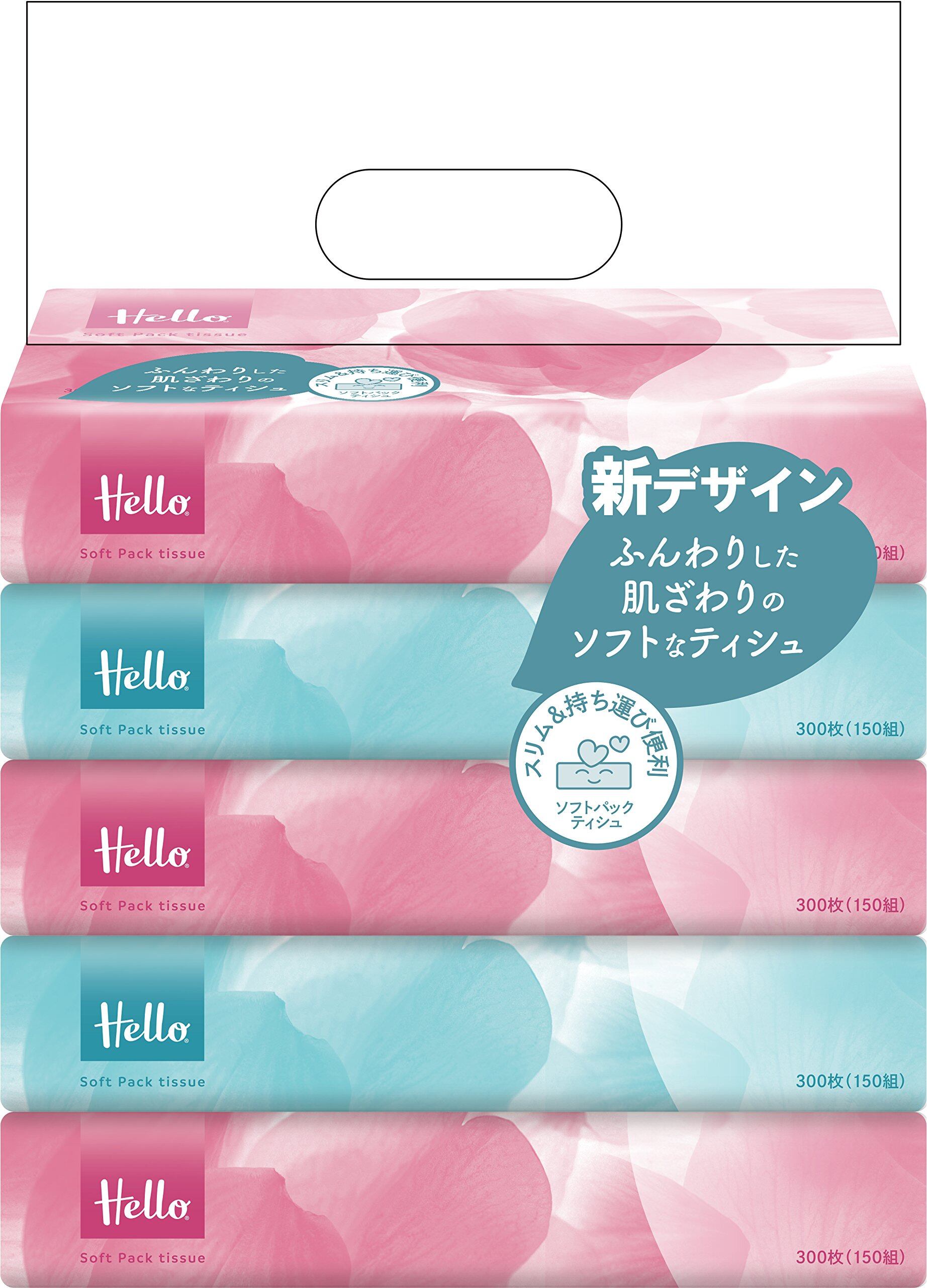 【箱売り】ハロー ソフトパックティッシュ 2枚組 150組 5個1パック x 18パック入 8249