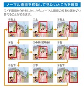 ワイド画面を9分割し、その1つずつをノーマル画面で確認することができます。(映像の周辺確認ができます。)