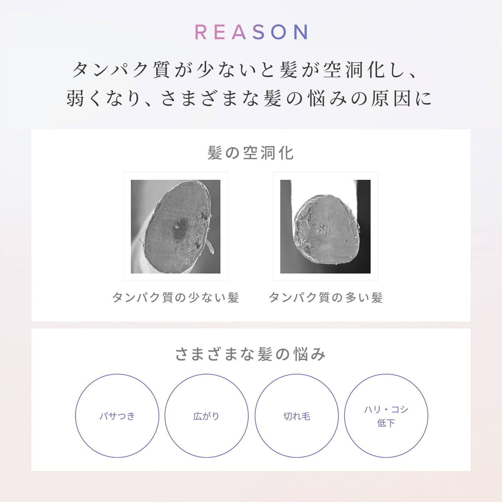 商品特長 天然ミルク ※1で、パサつきケア。プロテイン ※1を補給して、とぅるんとしたまとまり髪へ ※1 加水分解乳タンパク、トリプトファン(ヘアコンディショニング剤)