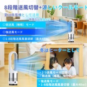【2025最新冷暖両用モデル 扇風機】弊社の 羽なし扇風機 は8段階送風風量(28-40w)と3段階温風(弱600w/中900w/強1100w)を自由に切り替えられます。1年四季に使える 扇風機 は寒い冬には電気ストーブとして、暑い夏にはDCモーター扇風機として使えます。冷暖兼用の ファンヒーター は快適加熱および送風効果をもたらし、四季折々の快適な室内環境を作られます。