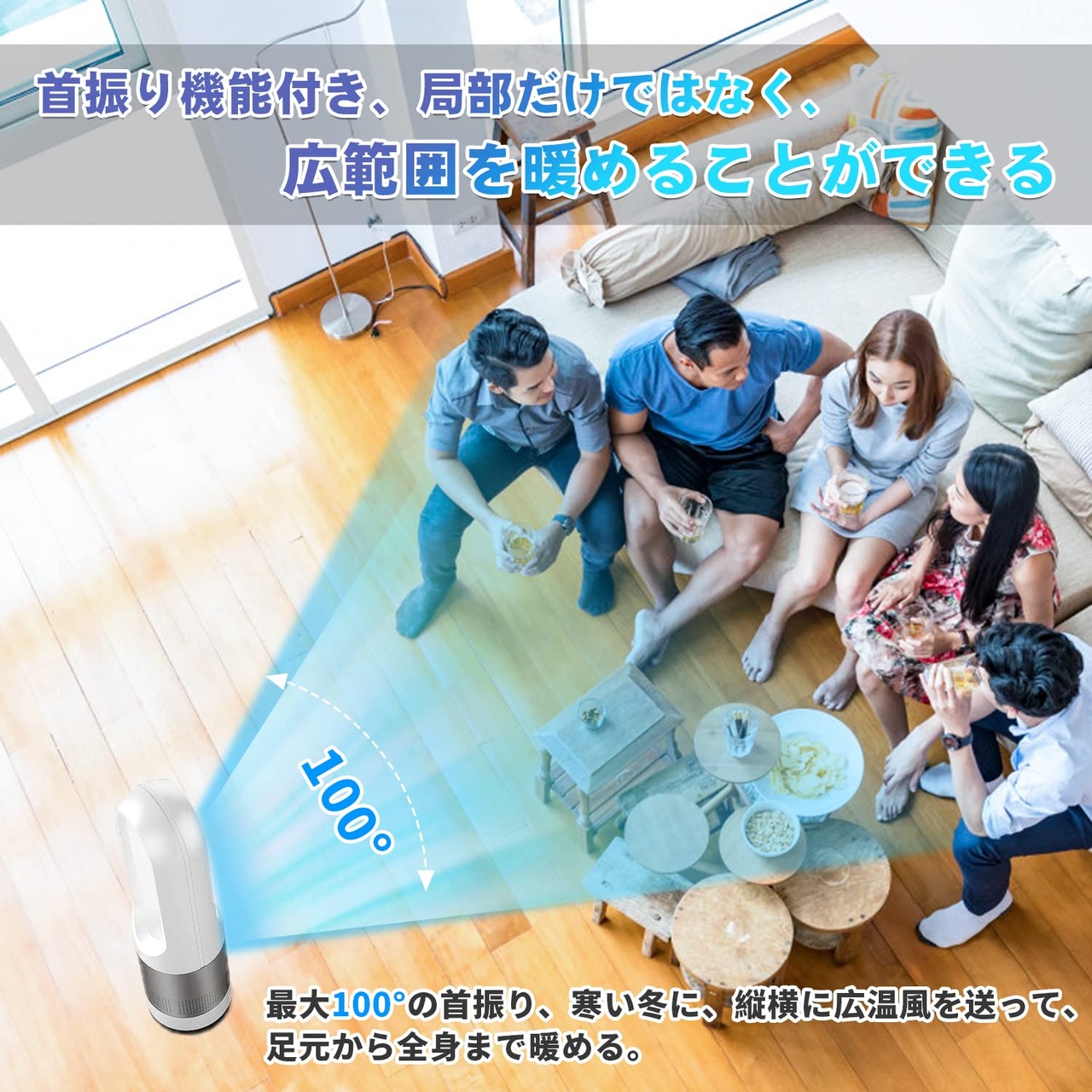 【大風量・省エネ節電 羽根無し扇風機 】弊社の DCモーターファンは 環状と複数の送風口は市販の普通品より風の直進性は優れて、カバーできる範囲も広く数秒間速暖を実現し、部屋中をしっかり暖められます。更に省エネの設計のため従来の加熱材料(石英管など)よりも省エネ節電です。