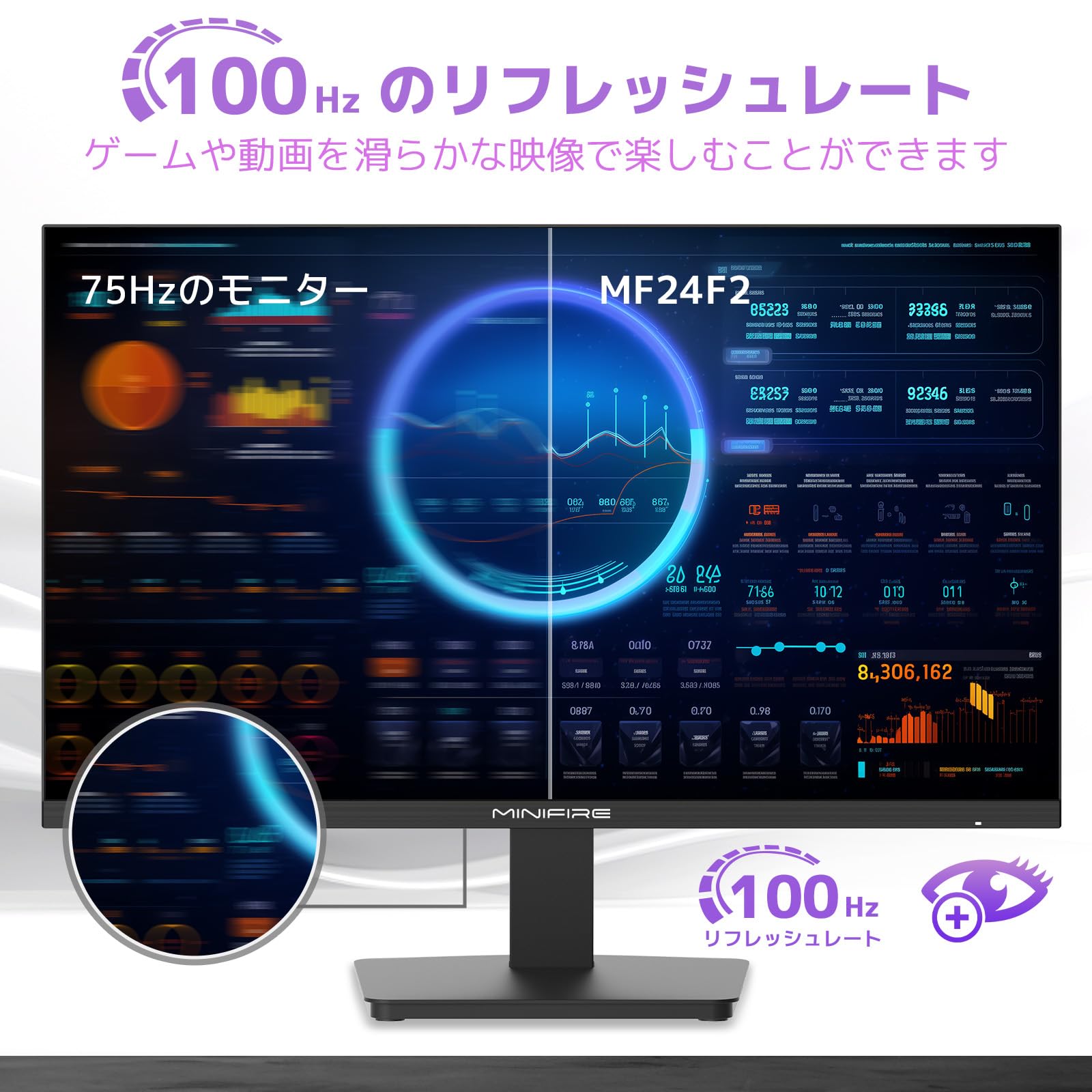 Minifire モニター24インチ ディスプレイ100Hz FHD 1080P USB-TypeC ブルーライト軽減 フリッカーフリー VESA対応 フレームレス HDMI1.4 コントラスト4000:1 チルト調節可 ビジネス用 五年保証 (USB Type-Cケーブル付-MF24F2)