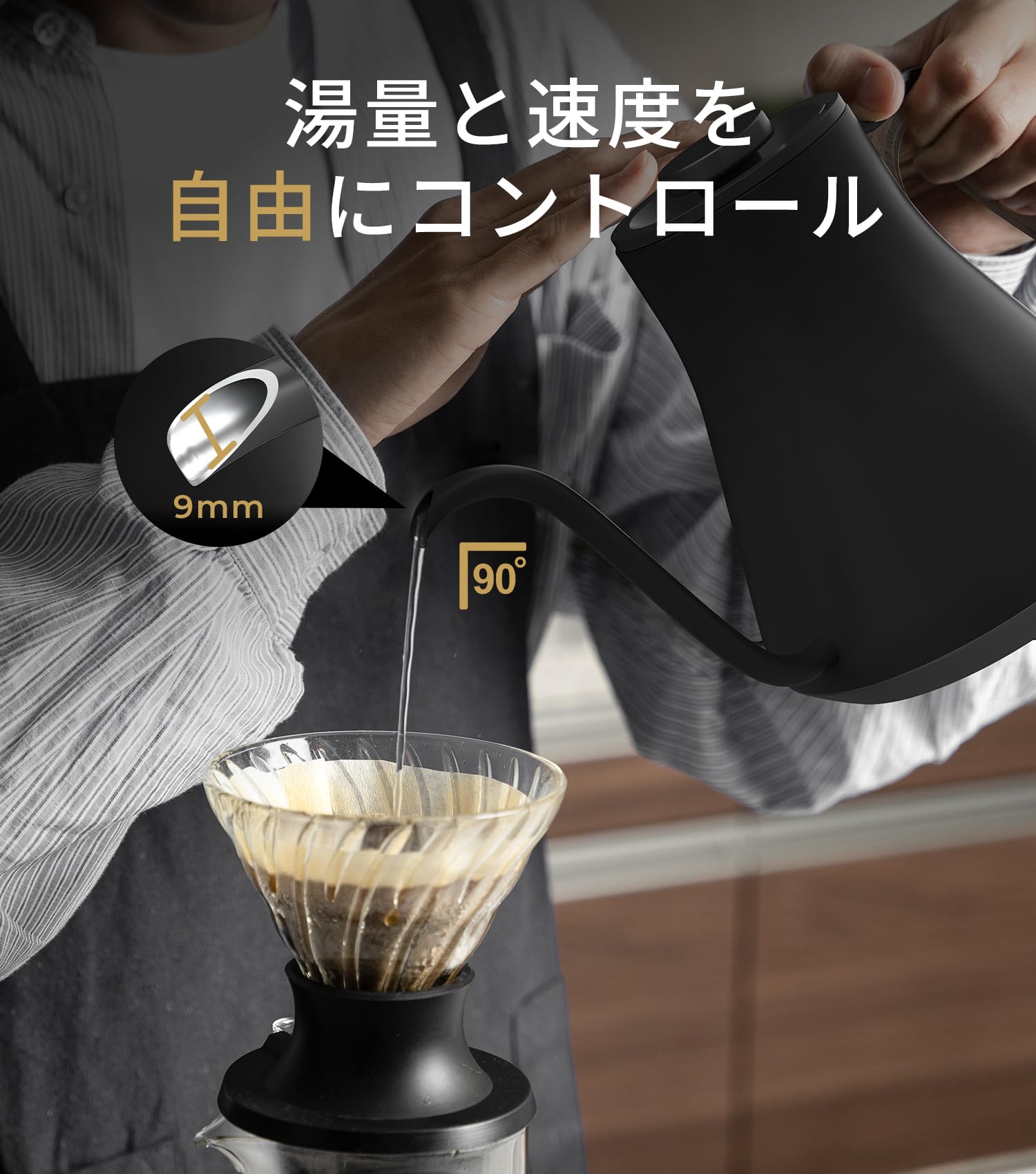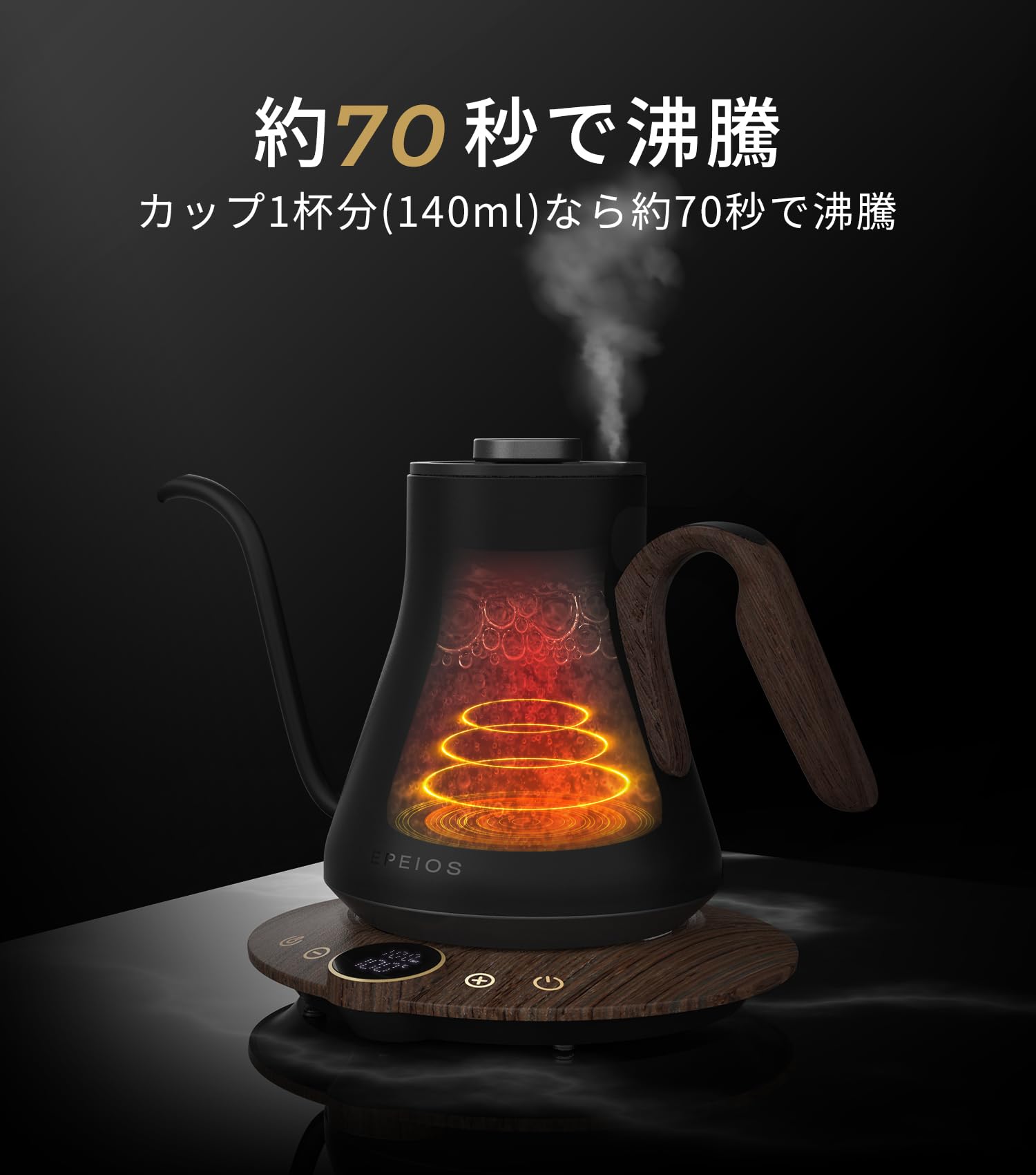 エペイオス(Epeios) 電気ケトル コーヒーケトル 1°C単位の精密調節 ドリップケトル コーヒーポット 細口ドリップ LED表示パネル 電気ポット ドリップ ポット コンパクト0.9L 1040W