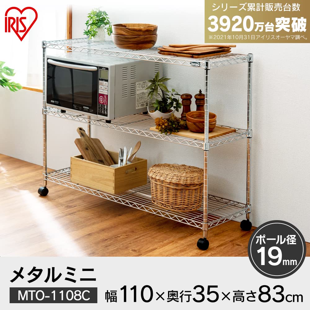 【特価セール】アイリスオーヤマ ラック メタルラック本体 3段 キャスター付き 幅110×奥行35×高さ83cm 防サビ加工 ポール径19mm メタルミニ スチールラック サビに強い 銀 MTO-1108C | ニコニコSHOP