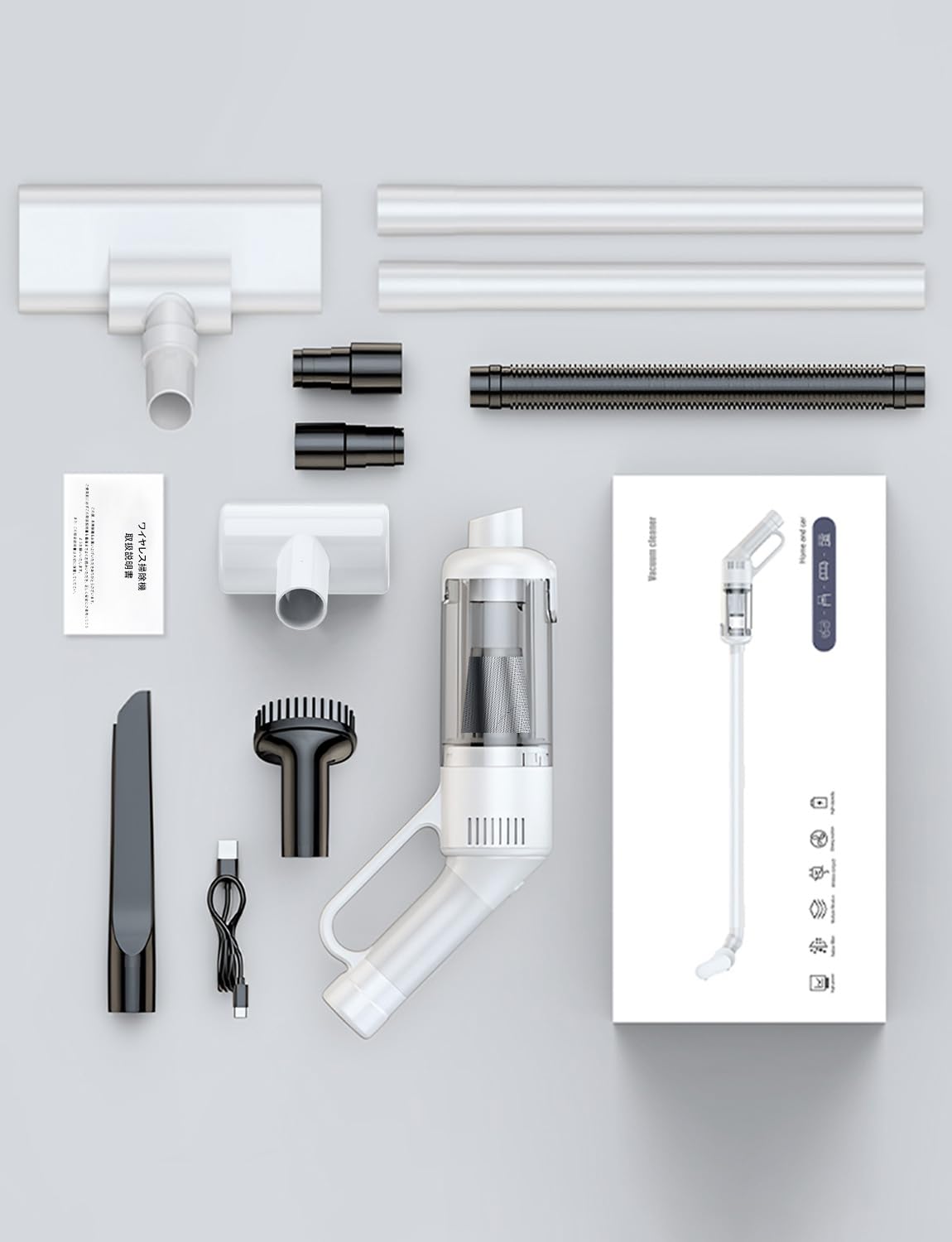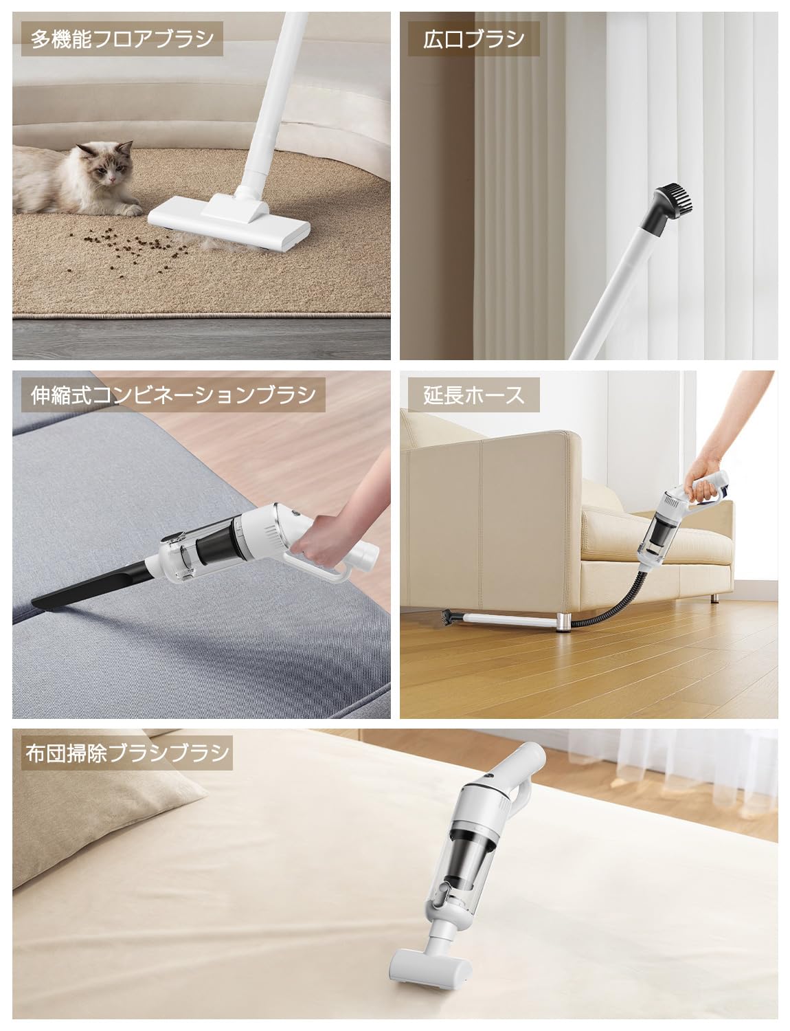 【Amazon 限定出品・2024進級版】掃除機 コードレス スティック掃除機 18000pa強力吸引 5種類ノズル HEPAフィルター Type-C充電式 40分間連続稼働 ハンディークリーナー スティッククリーナー 電気掃除機 家庭用 延長パイプ付き 日本語取扱説明書 (ホワイト)