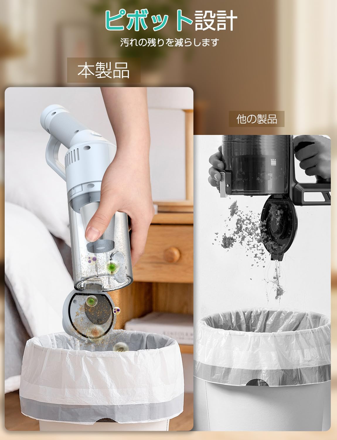 【ワンタッチでごみ取り&マルチ使用可能】ゴミを捨てるのに飽きたら、本掃除機を試してみてはいかがでしょうか!本品は多様なお客様の提案を吸収し、新しいワンタッチ集塵式の製品構成を採用しました。ゴミに手を触れることなく、ワンタッチでホコリの行き先の問題を解決します。本製品は4種類の交換ノズルを提供します。5種類のノズルは家庭のすべての生活シーンをカバーし、1つの製品ですべての生活の難題を解決します。